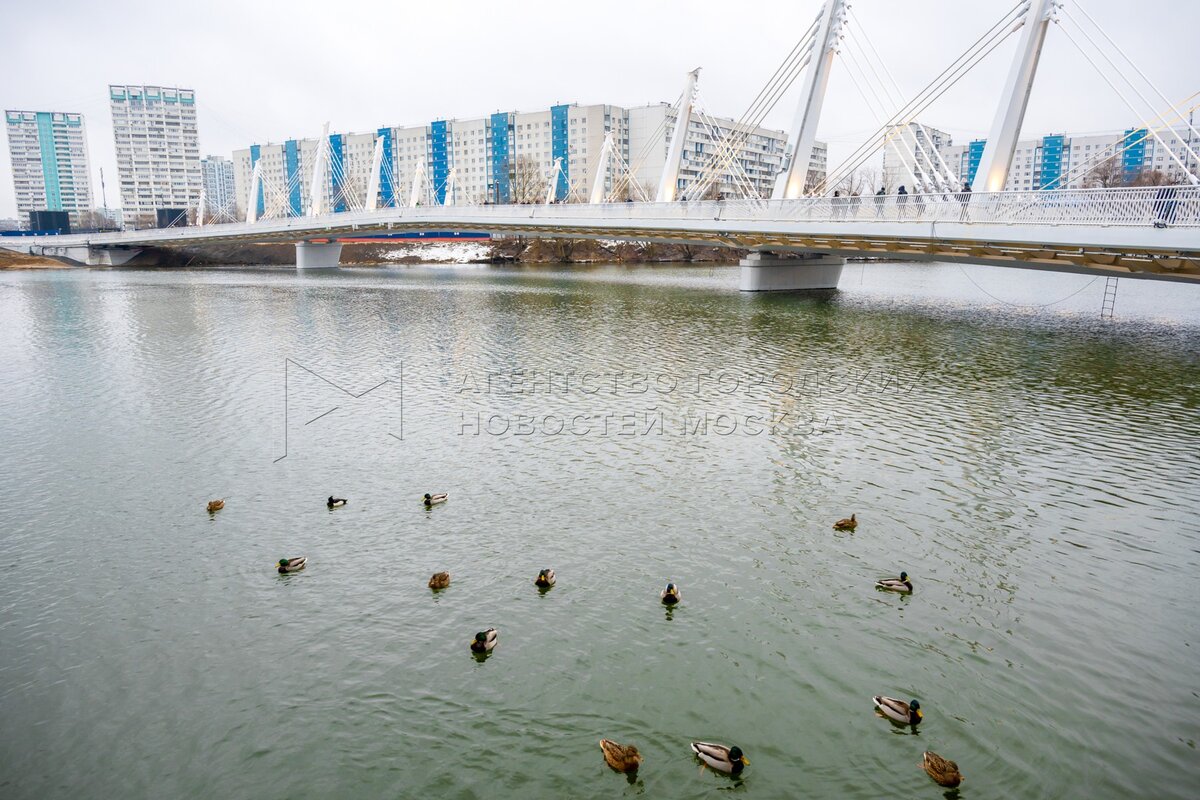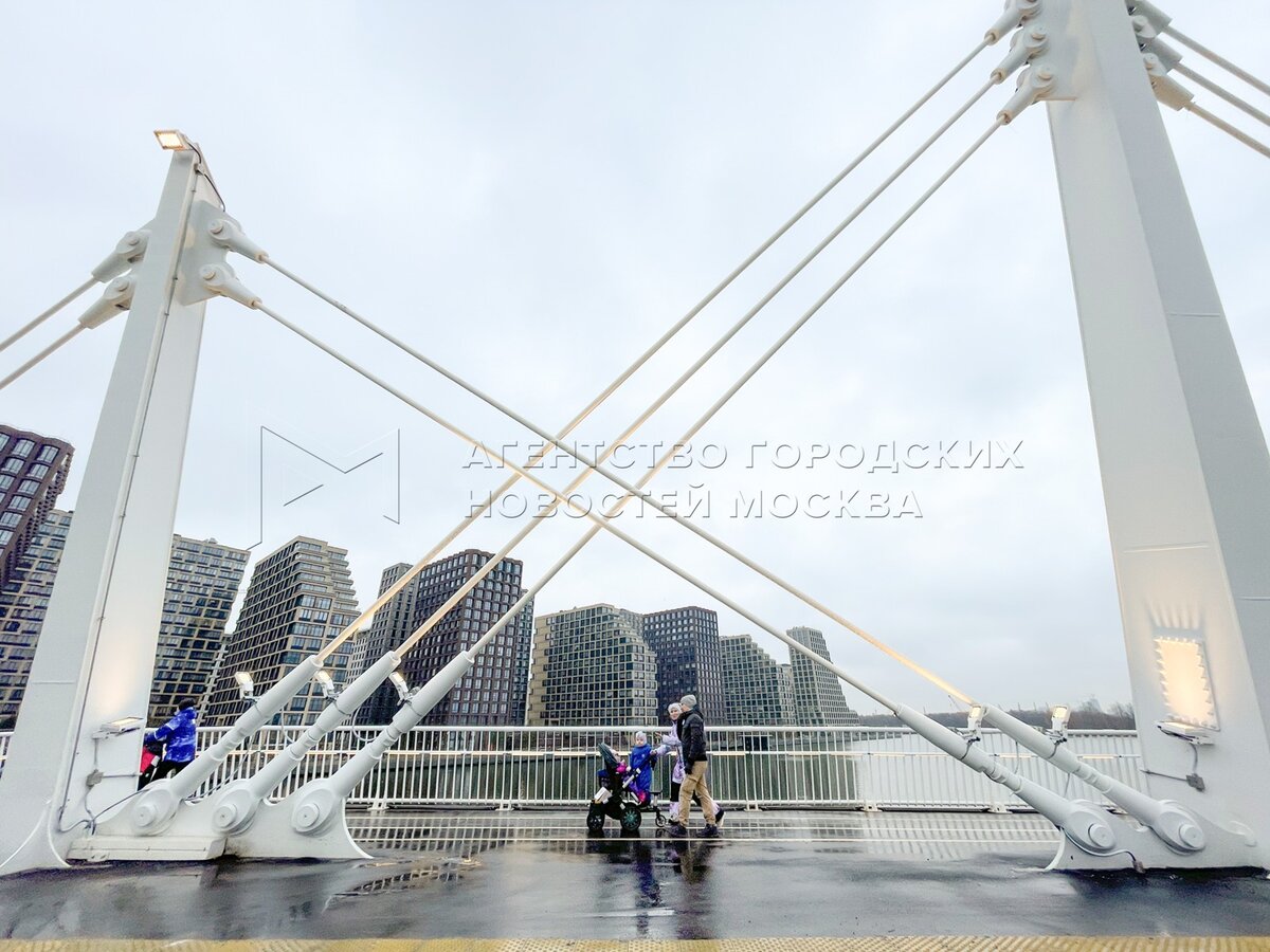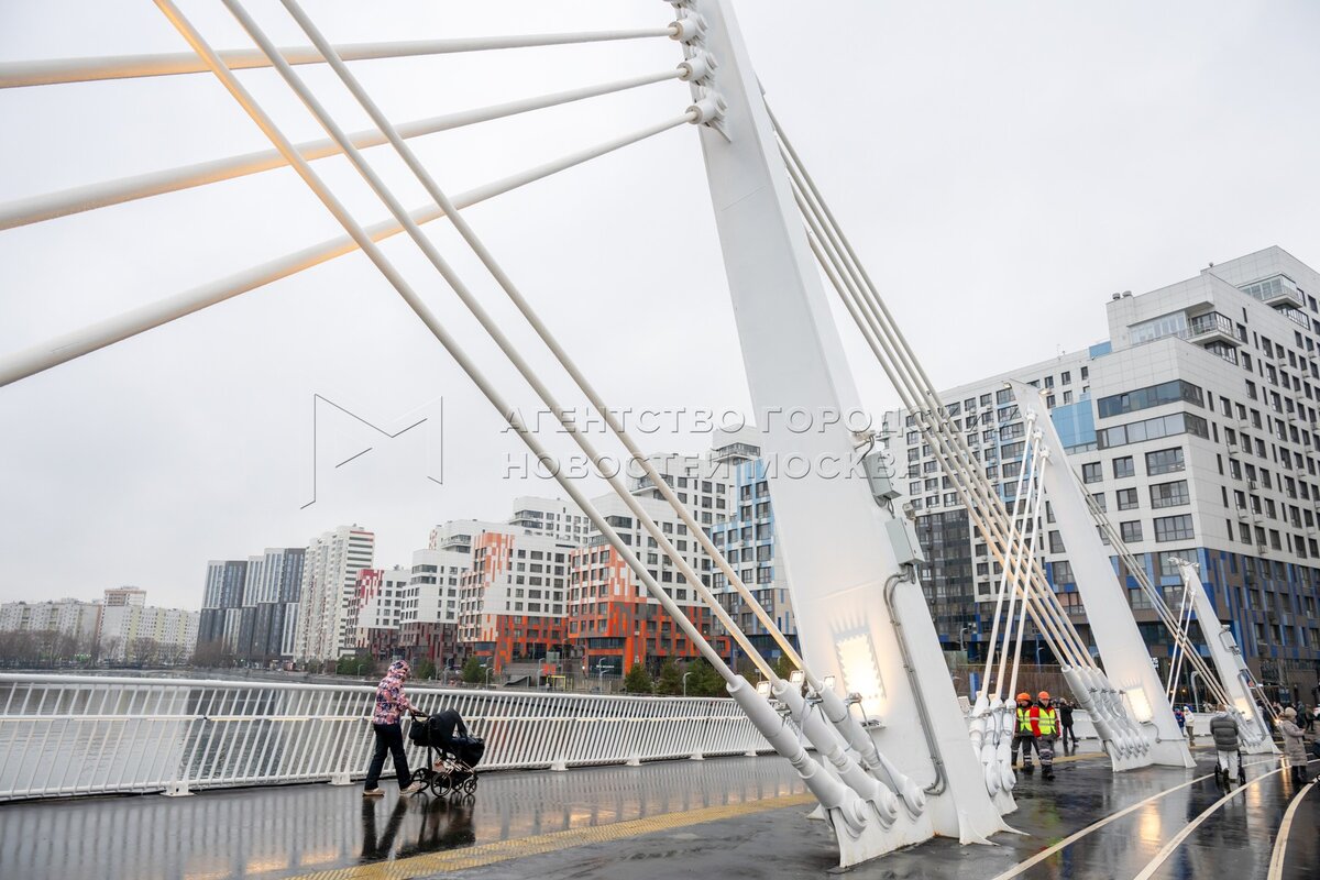 - Описание: Открытие нового велопешеходного моста через Нагатинский затон, который свяжет одноименную станцию Большой кольцевой линии метро с набережной у жилого комплекса «Ривер Парк Коломенское» и причалом электросудов. Фото: пресс-служба мэра и правительства Москвы.
