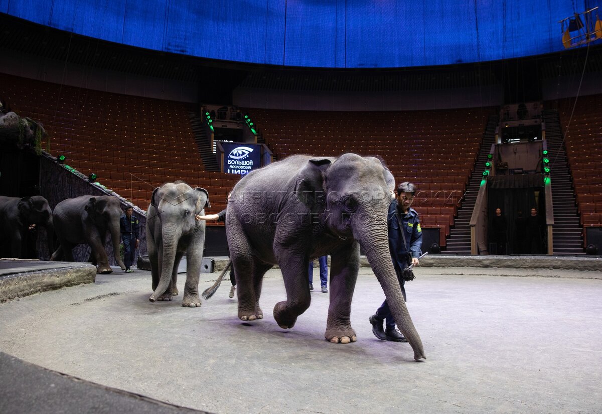 Презентация шести слонят, доставленных из Мьянмы в Большой Московский цирк на проспекте Вернадского