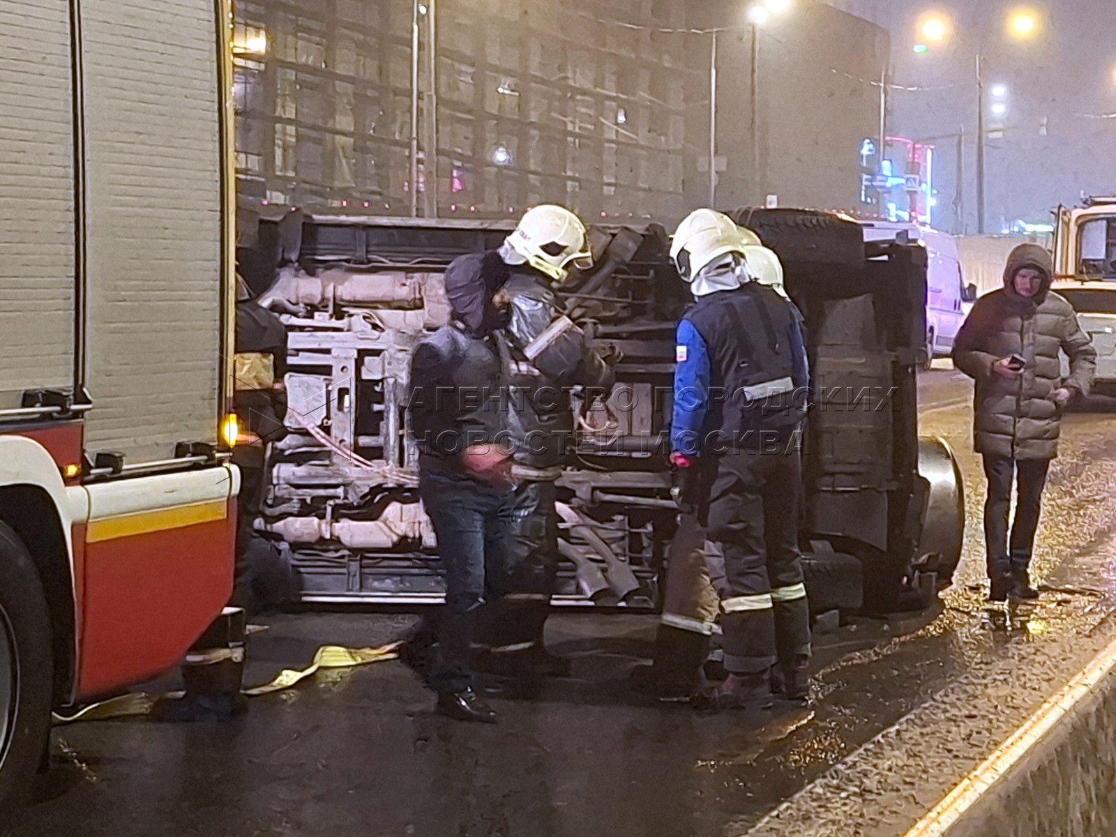 - Заголовок: Последствия опрокидывания автомобиля на въезде в Таганский тоннель
