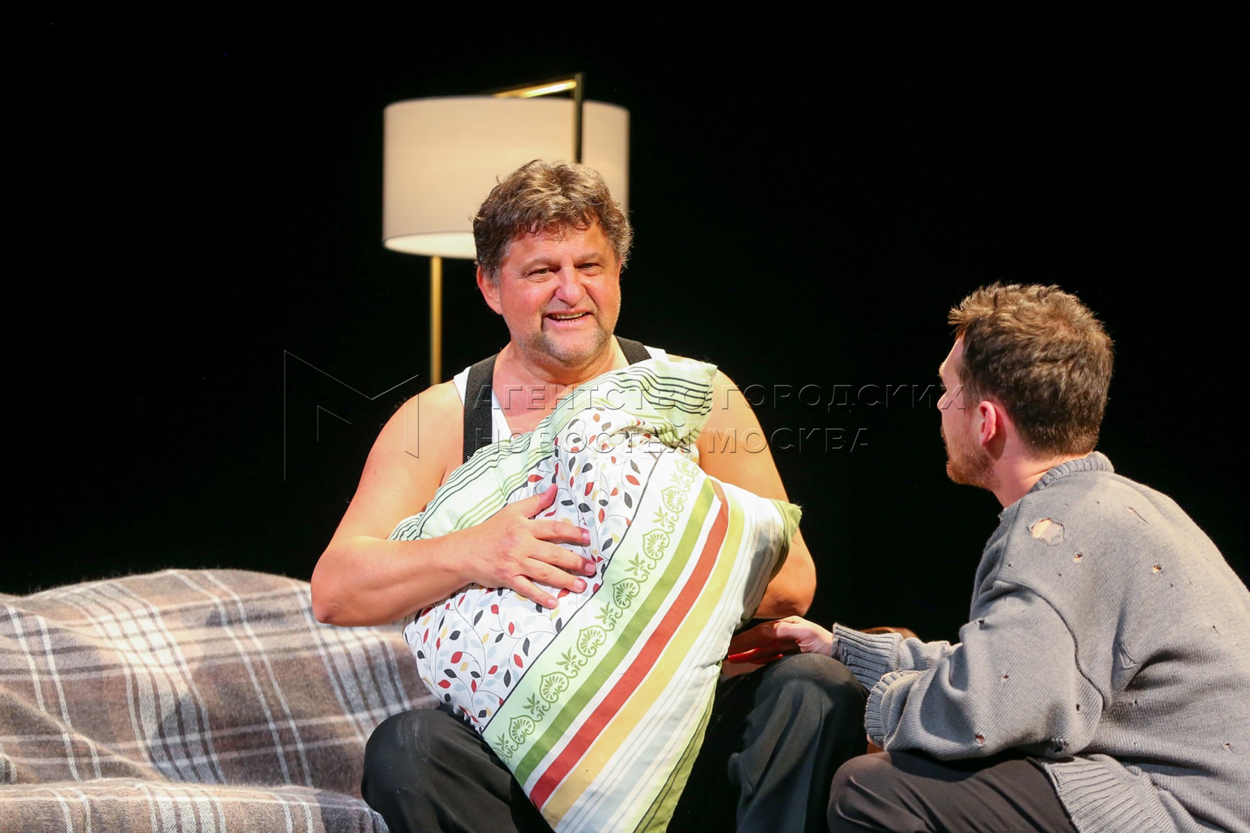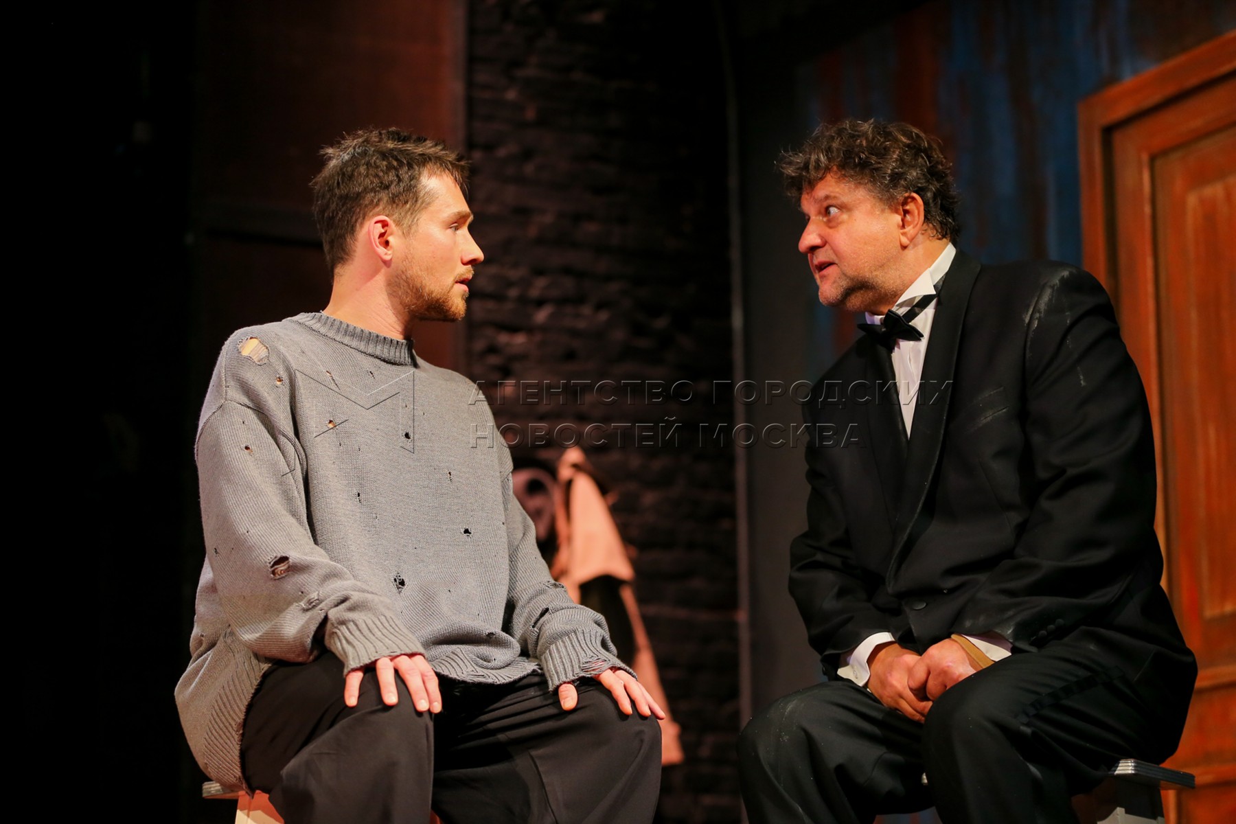 - Описание: Актеры Илья Антоненко в роли Бусыгина и Юлия Максютина в роли Нины во время показа спектакля «Старший сын» по пьесе Александра Вампилова в постановке режиссера Кирилла Пирогова на Основной сцене Московского драматического театра имени Гоголя на ул. Казакова.