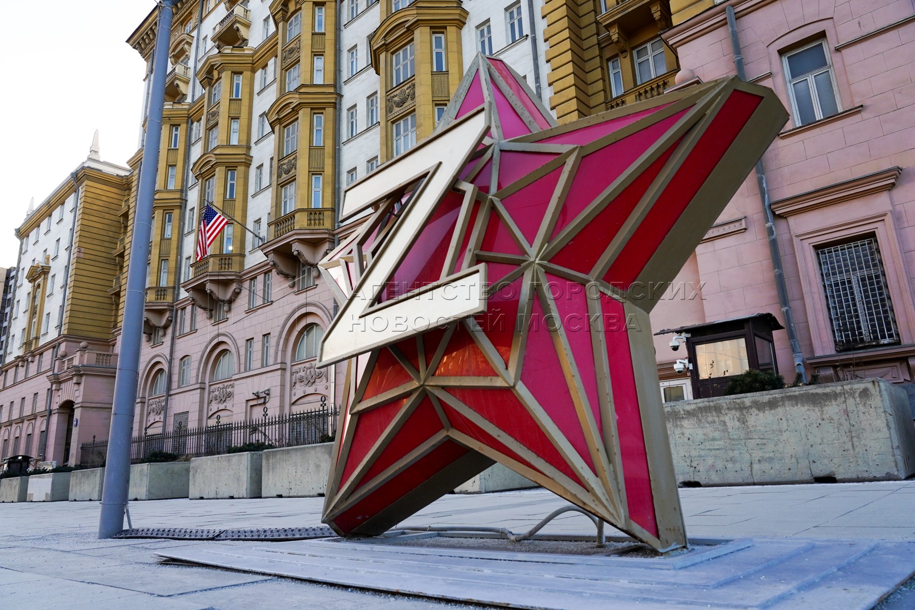 • Заголовок: Флаг на здании посольства США в Москве