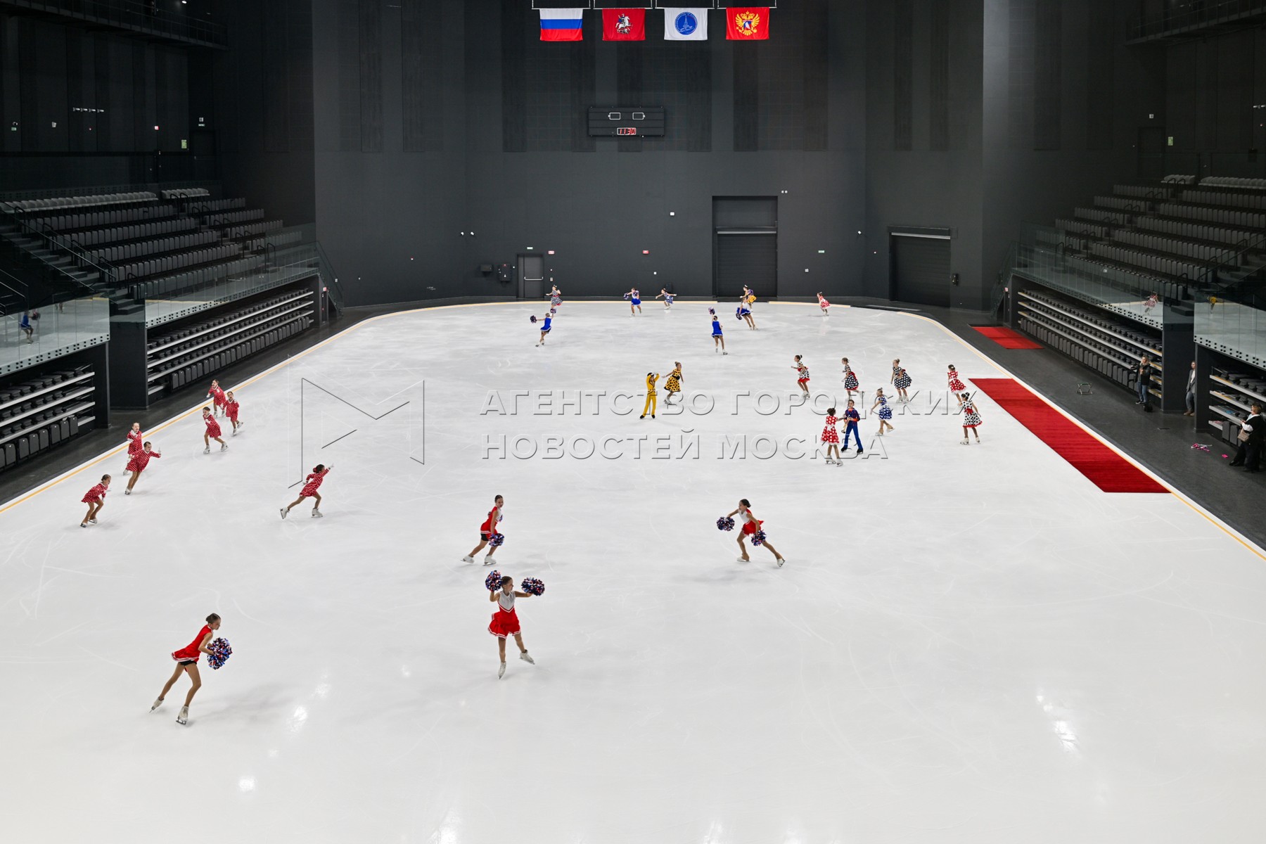 • Описание: Юные фигуристки во время занятий на ледовой арене нового ледового дворца в Мневниковской пойме. Фото: Максим Мишин, пресс-служба мэра и правительства Москвы.