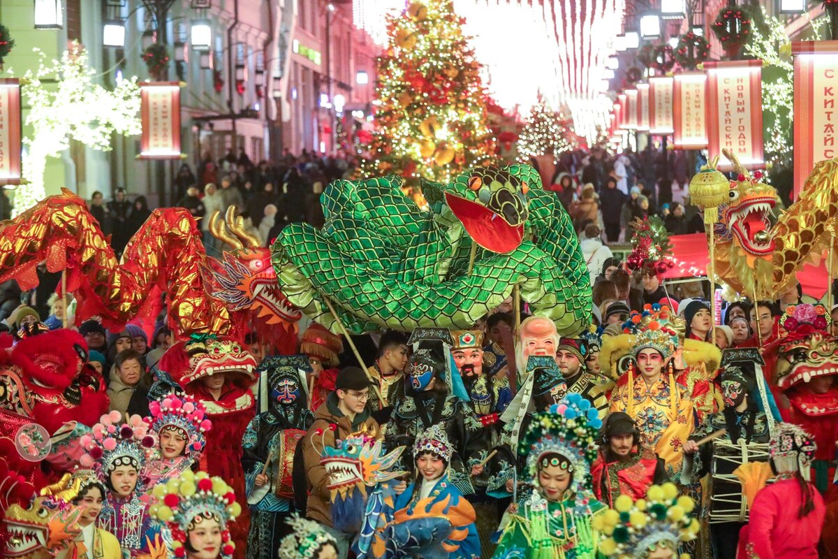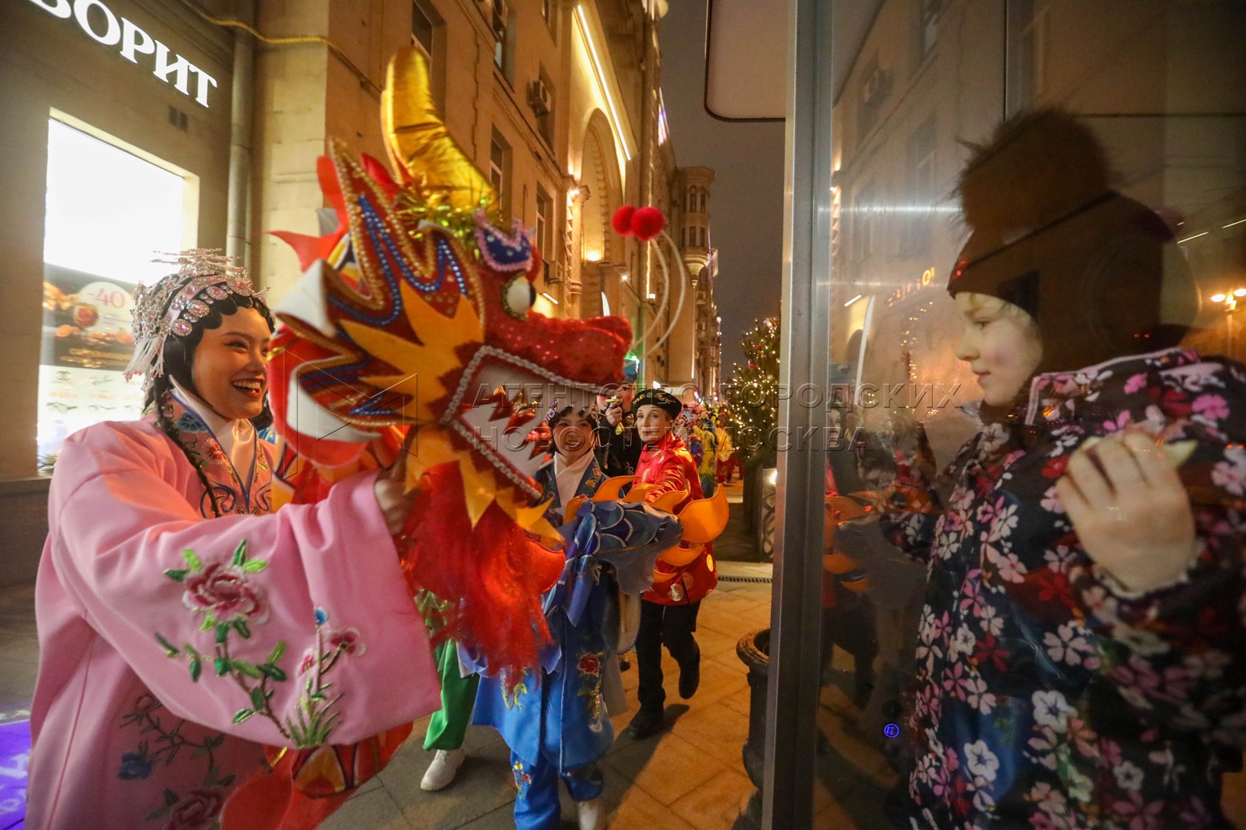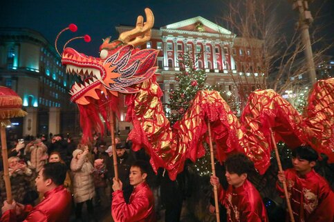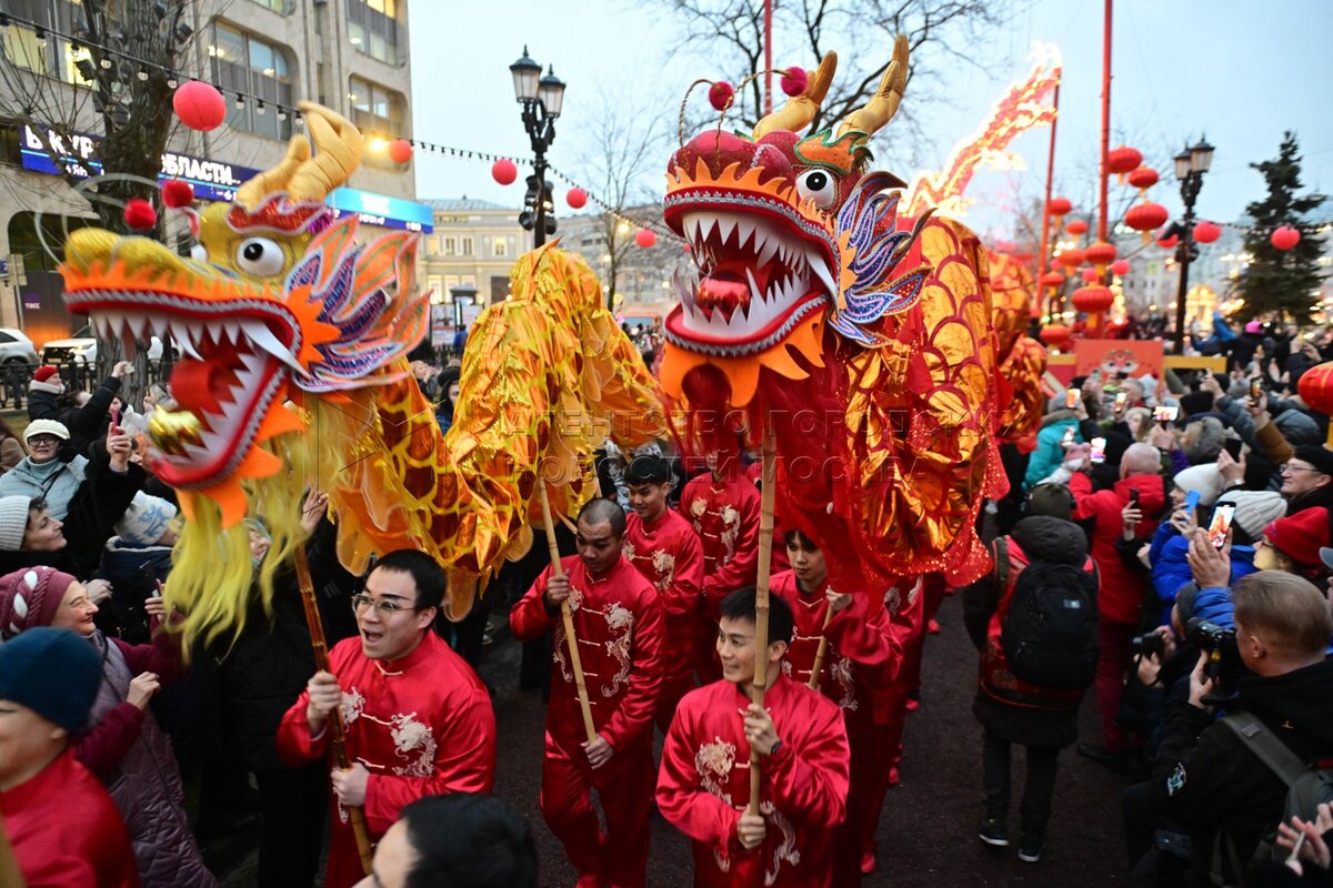 Большое уличное шествие Дракона и Змеи по маршруту от Тверского бульвара до Манеж...