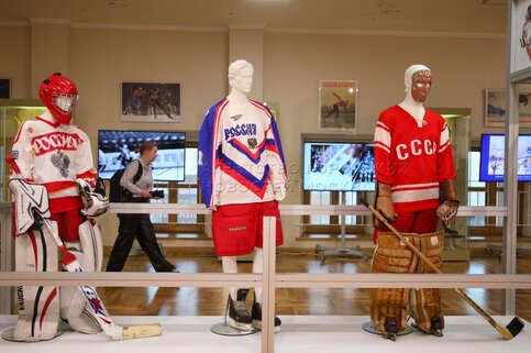 Экипировка хоккеистов. Предпоказ выставки «Вставай на лыжи и коньки!» в Государст...
