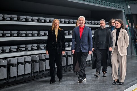 Фигуристка Татьяна Навка (слева на втором плане) и мэр Москвы Сергей Собянин во в...