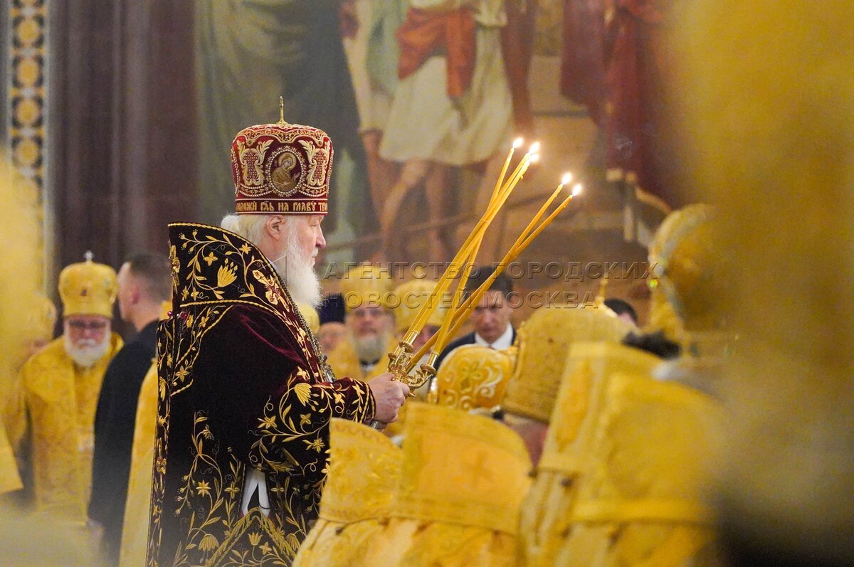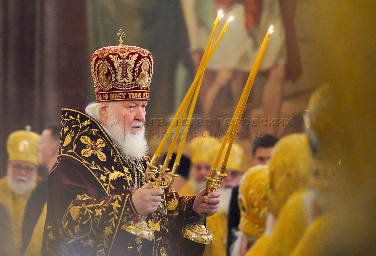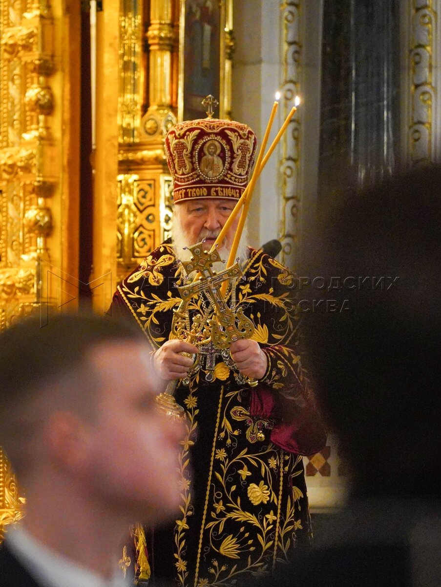 Святейший Патриарх Московский и всея Руси Кирилл во время богослужения в 16-ю год...
