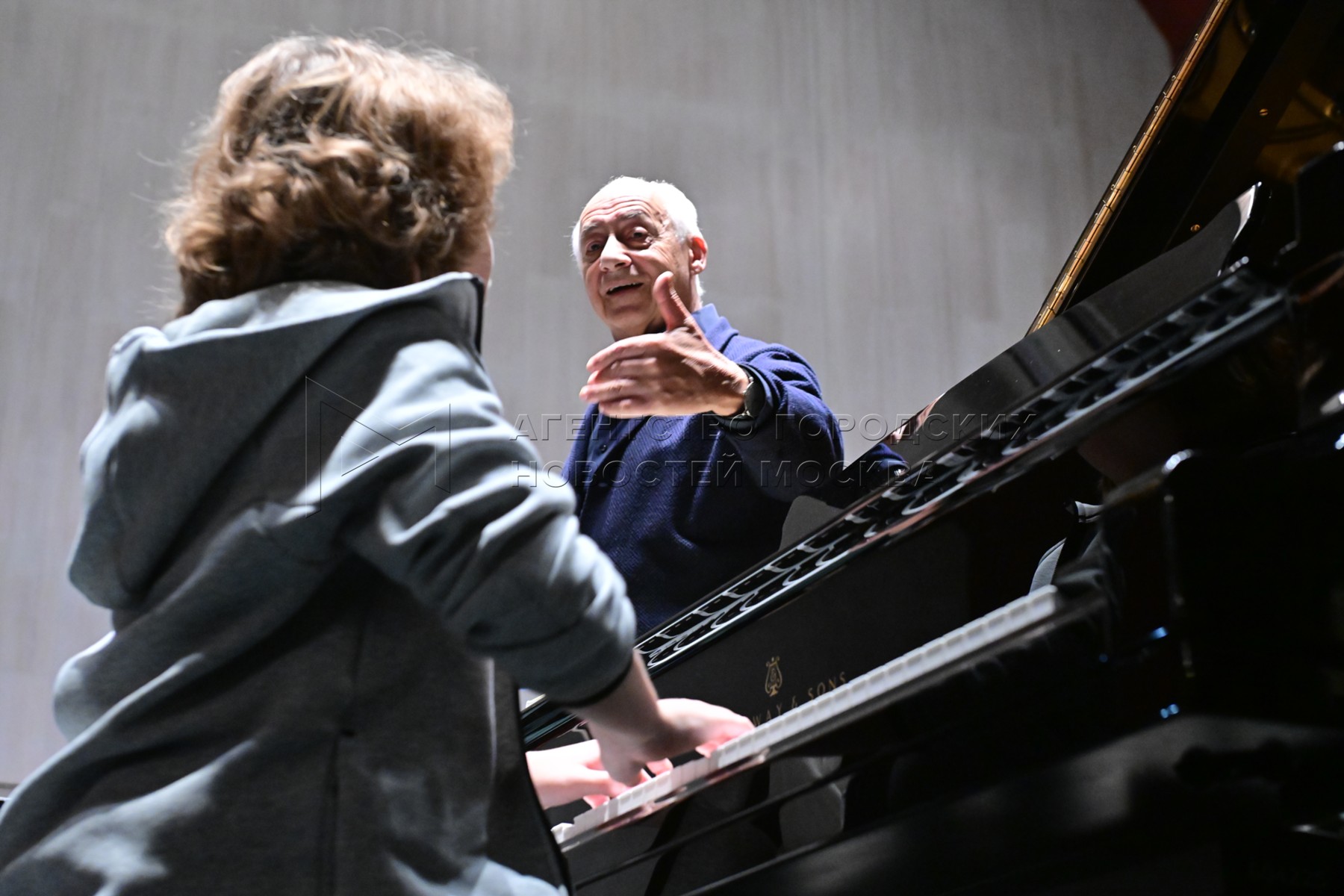 Художественный руководитель, дирижер государственного камерного оркестра «Виртуозы Москвы» Владимир Спиваков во время открытой репетиции с оркестром «Виртуозы Москвы» для учащихся московских детских школ искусств в рамках старта второго сезона проекта «Урок со звездой» в Доме музыки.