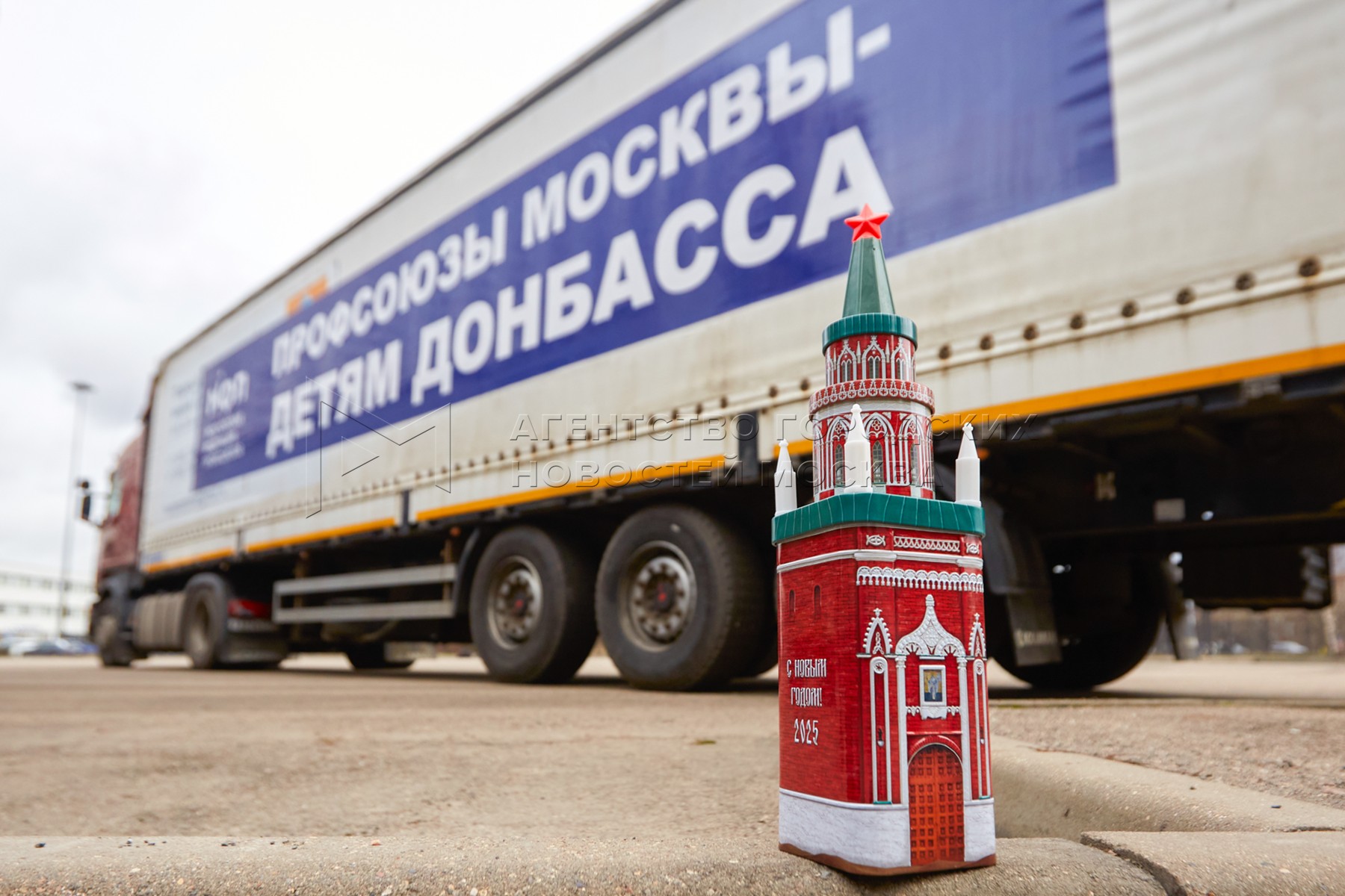 Отправка от гостиницы «Измайлово» грузовиков с подарками детям Донбасса.