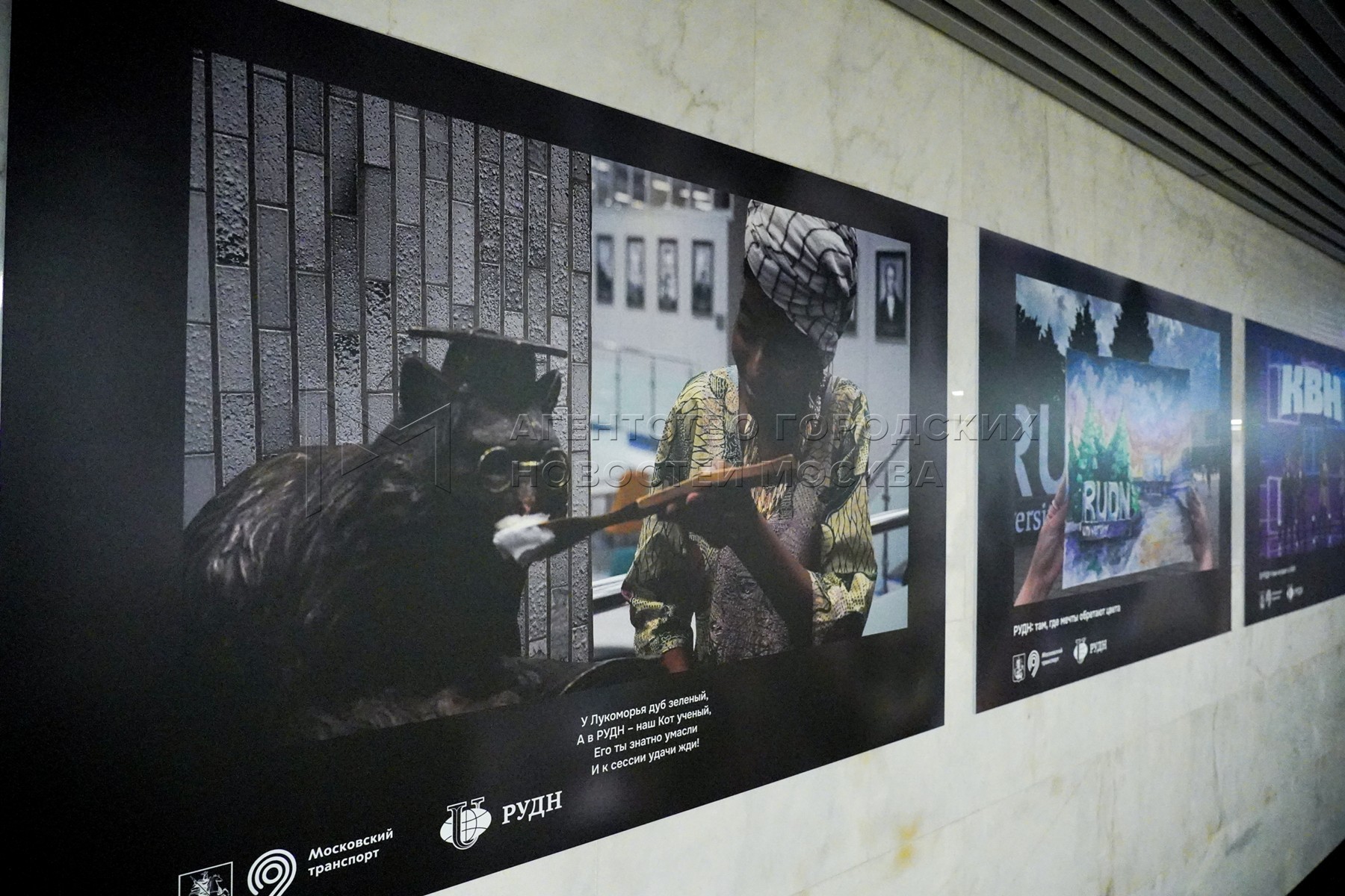 Фотовыставка в вестибюле станции «Университет Дружбы Народов» Троицкой линии Московского метрополитена, посвященная 65-летию основания РУДН.