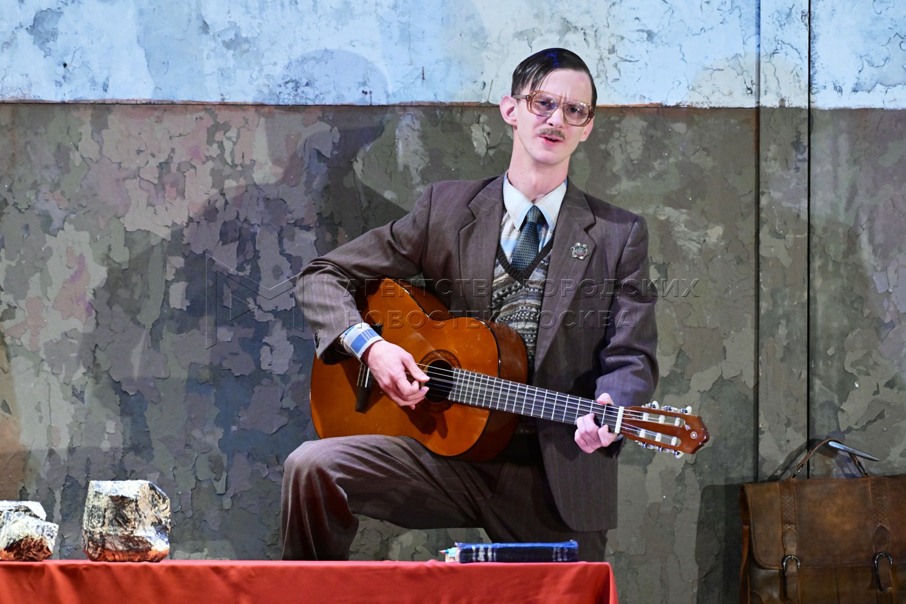 Актер Александр Зарядин в роли Бориса Рыжего. Показ спектакля «Рыжий. Я всех люби...