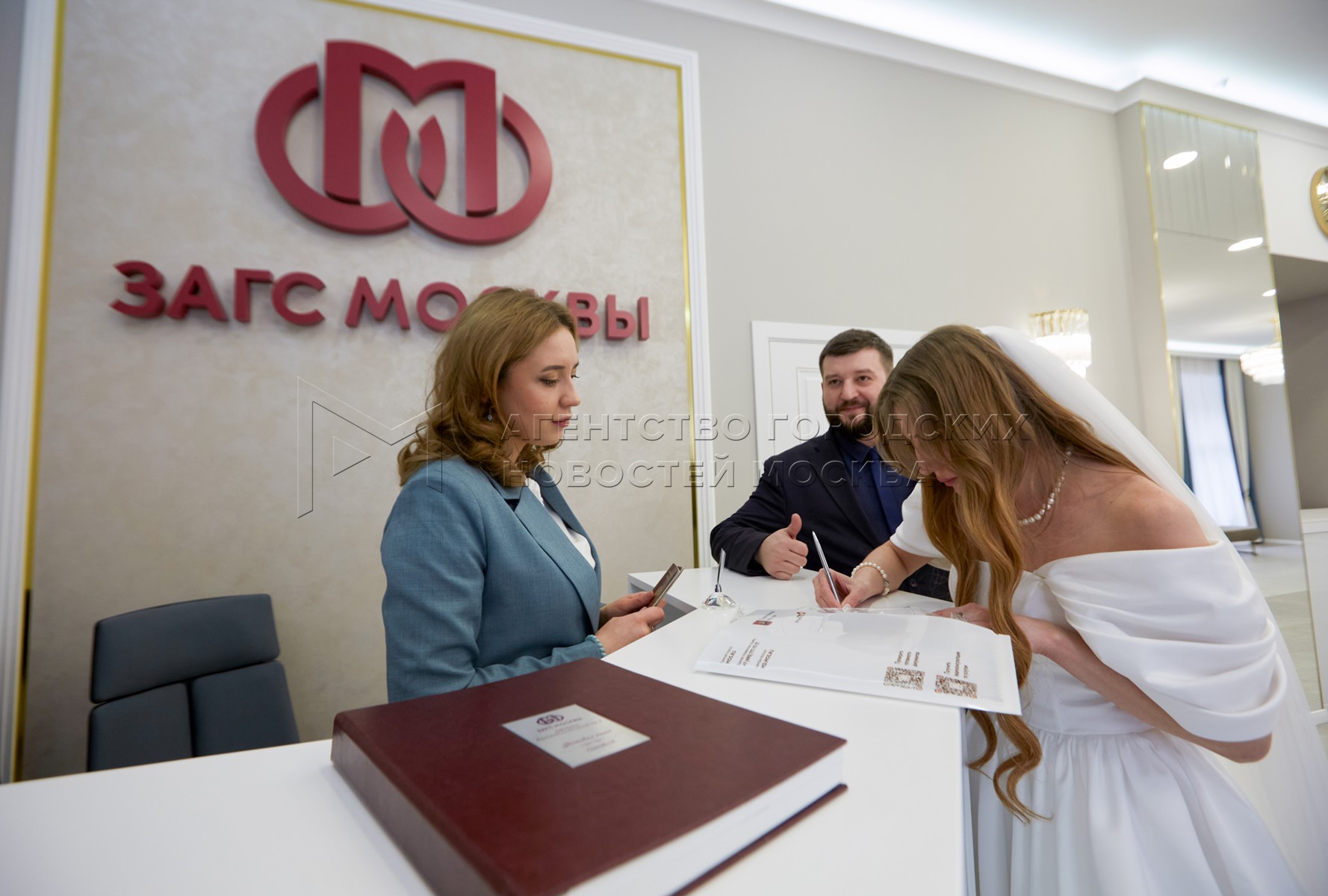Новобрачные Светлана Ненашева и Александр Прилепский на церемонии бракосочетания ...