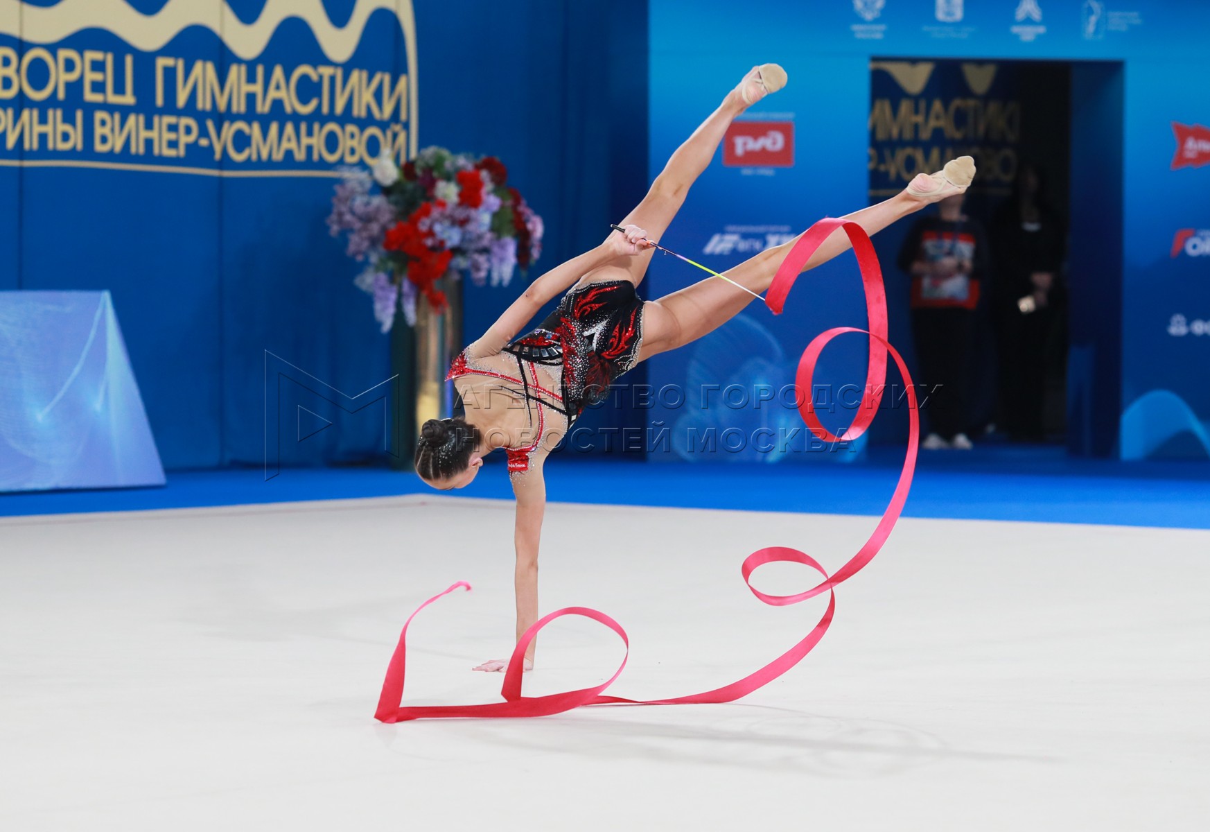 Гимнастка Ульяна Янус выполняет упражнение с лентой. Чемпионат России по художест...