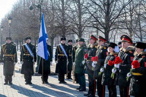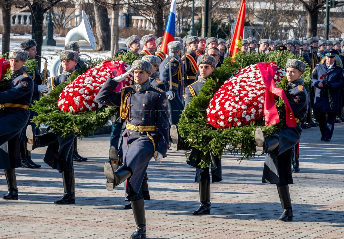 • Описание: Церемония возложения цветов к Могиле Неизвестного солдата в Александровском саду в День защитника Отечества. Фото: Владимир Новиков, пресс-служба мэра и правительства Москвы.