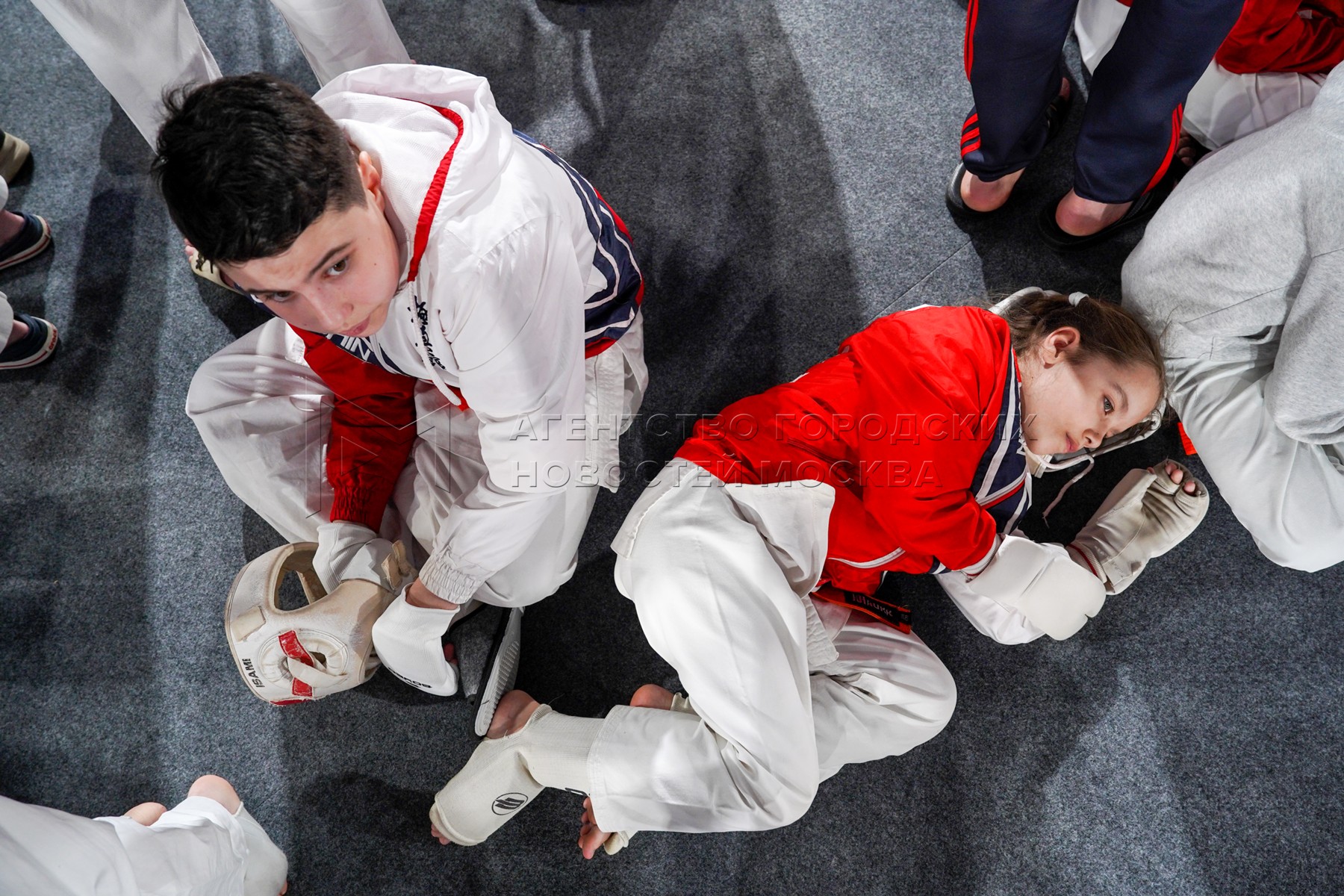 Теги: Дети , Соревнования , карате , подростки , спорт , Поединки , Спортсмены , Участники , Международный , Боевые искусства , Шлем , Турнир , Кекусинкан , кимоно