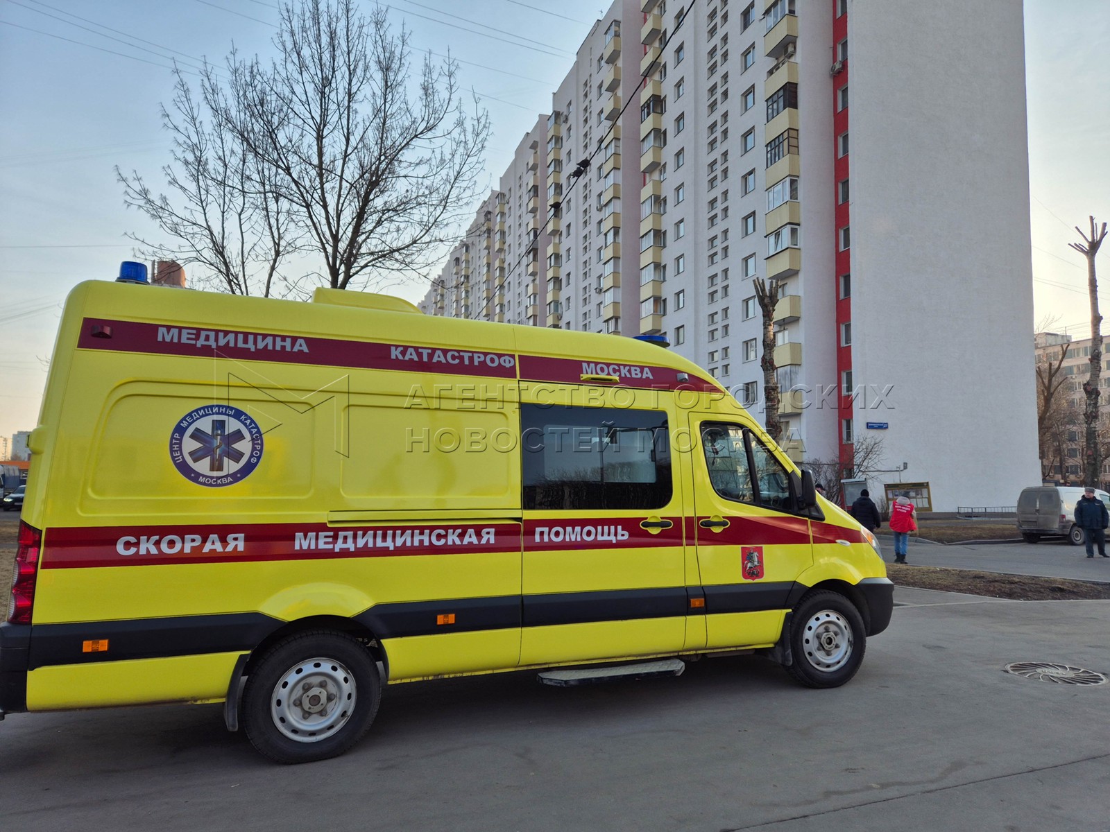 Карета скорой помощи Федерального центра медицины катастроф у д. 27 на ул. Домоде...