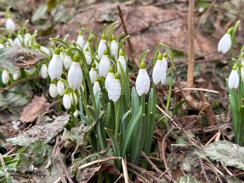 • Заголовок: Подснежники зацвели на улице Красного Маяка на юге Москвы