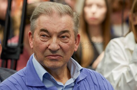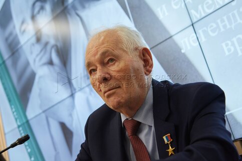 Врач-педиатр, хирург и общественный деятель Леонид Рошаль во время презентации св...
