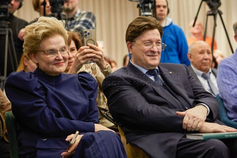 Врач-педиатр, хирург и общественный деятель Леонид Рошаль (в центре) и президент ...