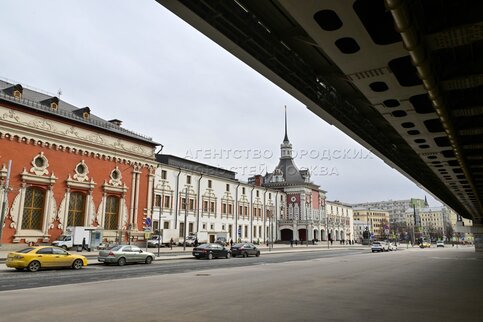 Мост Каланчевского путепровода и поезд Московских центральных диаметров (МЦД) на ...