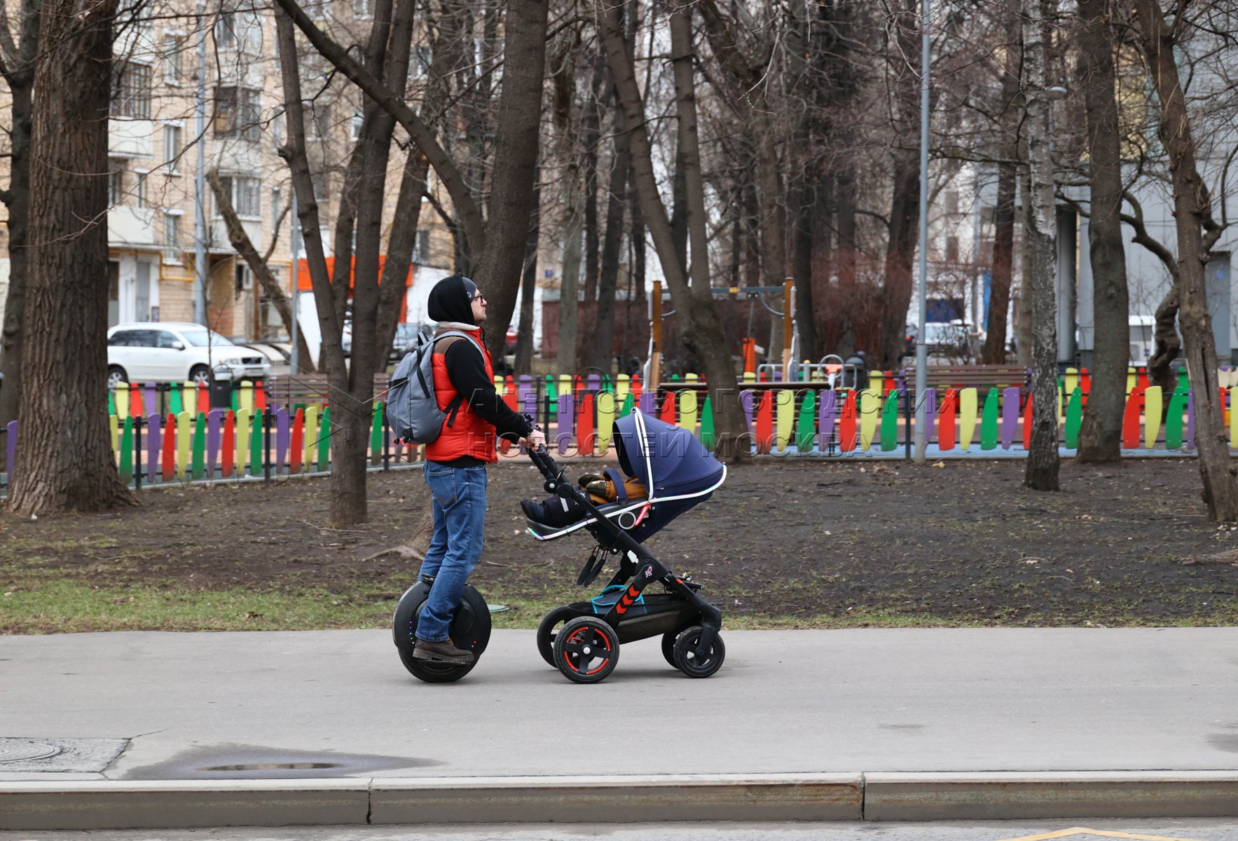 Женщина на моноколесе с детской коляской. Городские жанры 15 марта 2025 года.