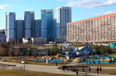 Высотки ЖК «Гранд-Парк» и парк Ходынское поле.