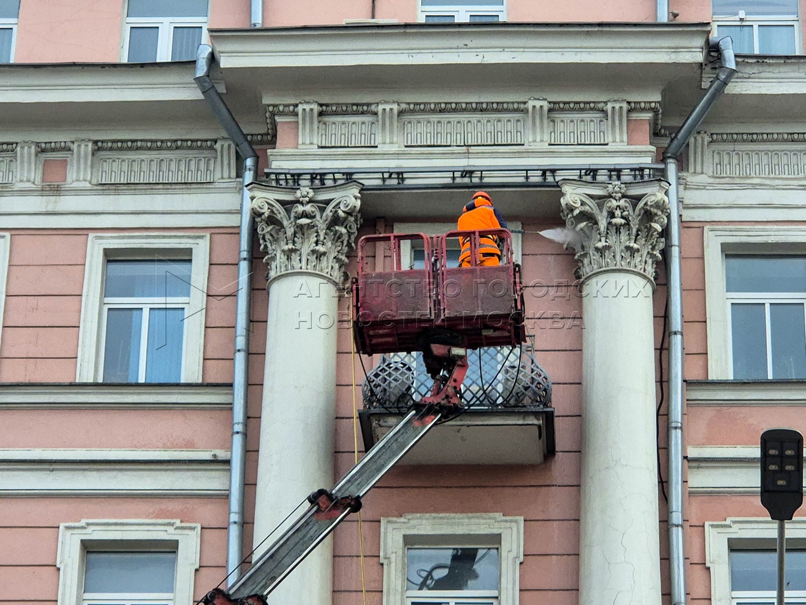 • Описание: Работы по промывке фасадов зданий начались в Москве.