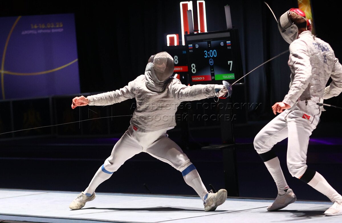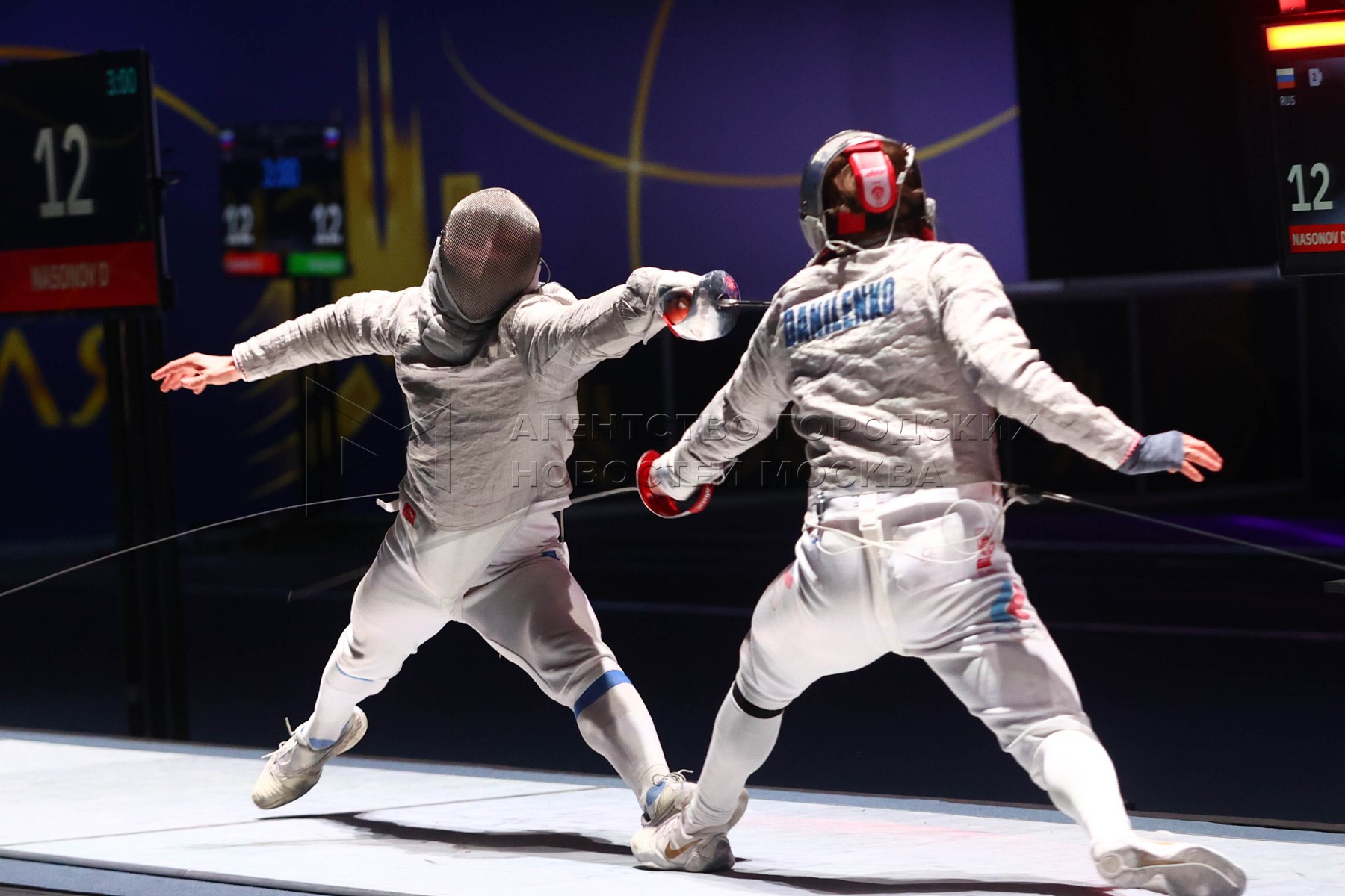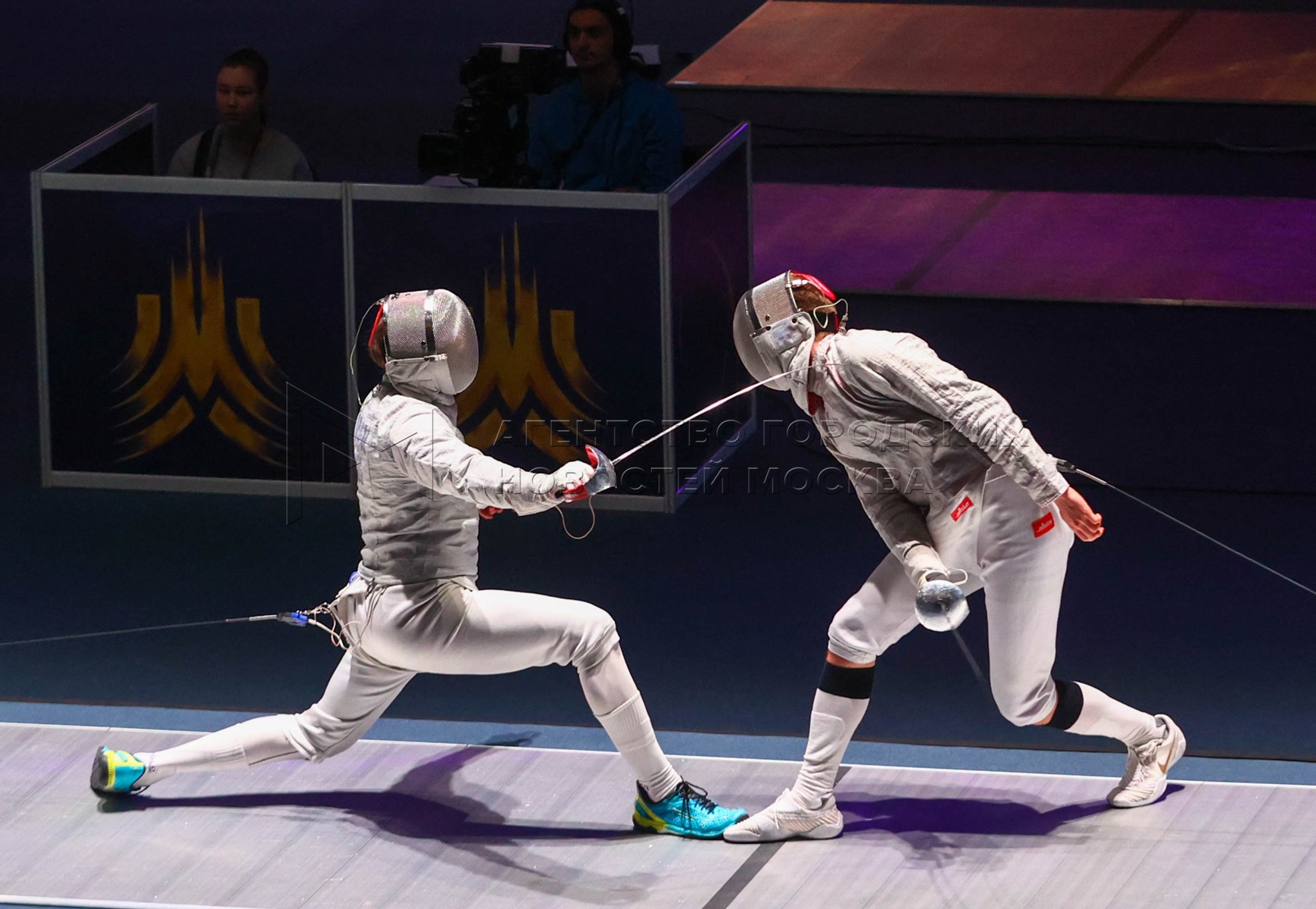 Саблист Яруллин Кирам (слева). Международные соревнования по фехтованию «Московск...