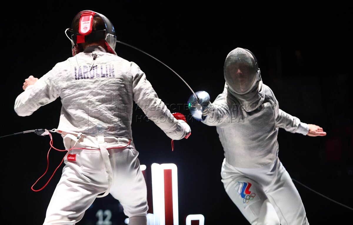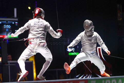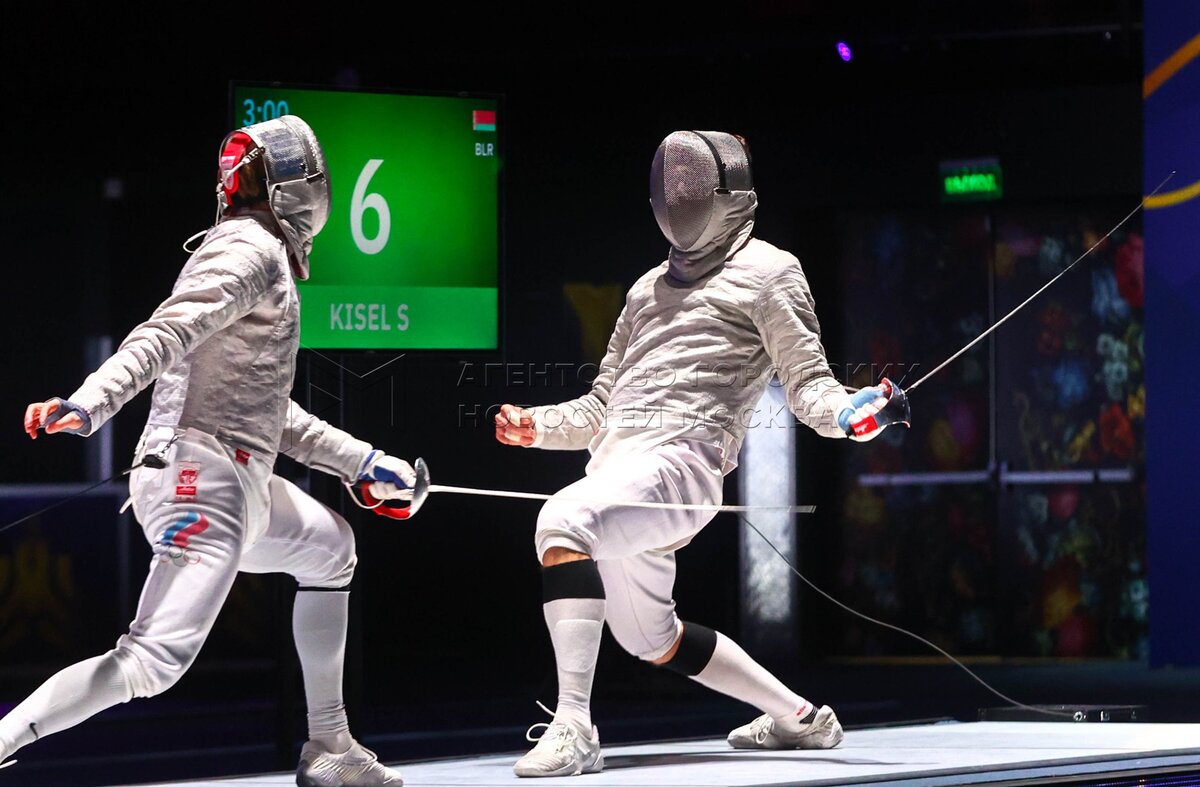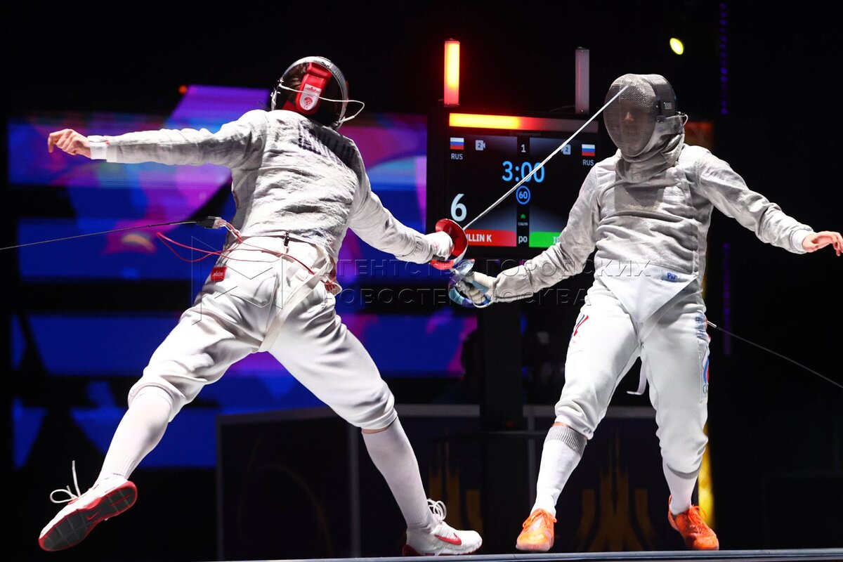 Саблист Яруллин Кирам (слева). Международные соревнования по фехтованию «Московск...