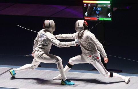 Саблист Кирам Яруллин (слева). Международные соревнования по фехтованию «Московск...