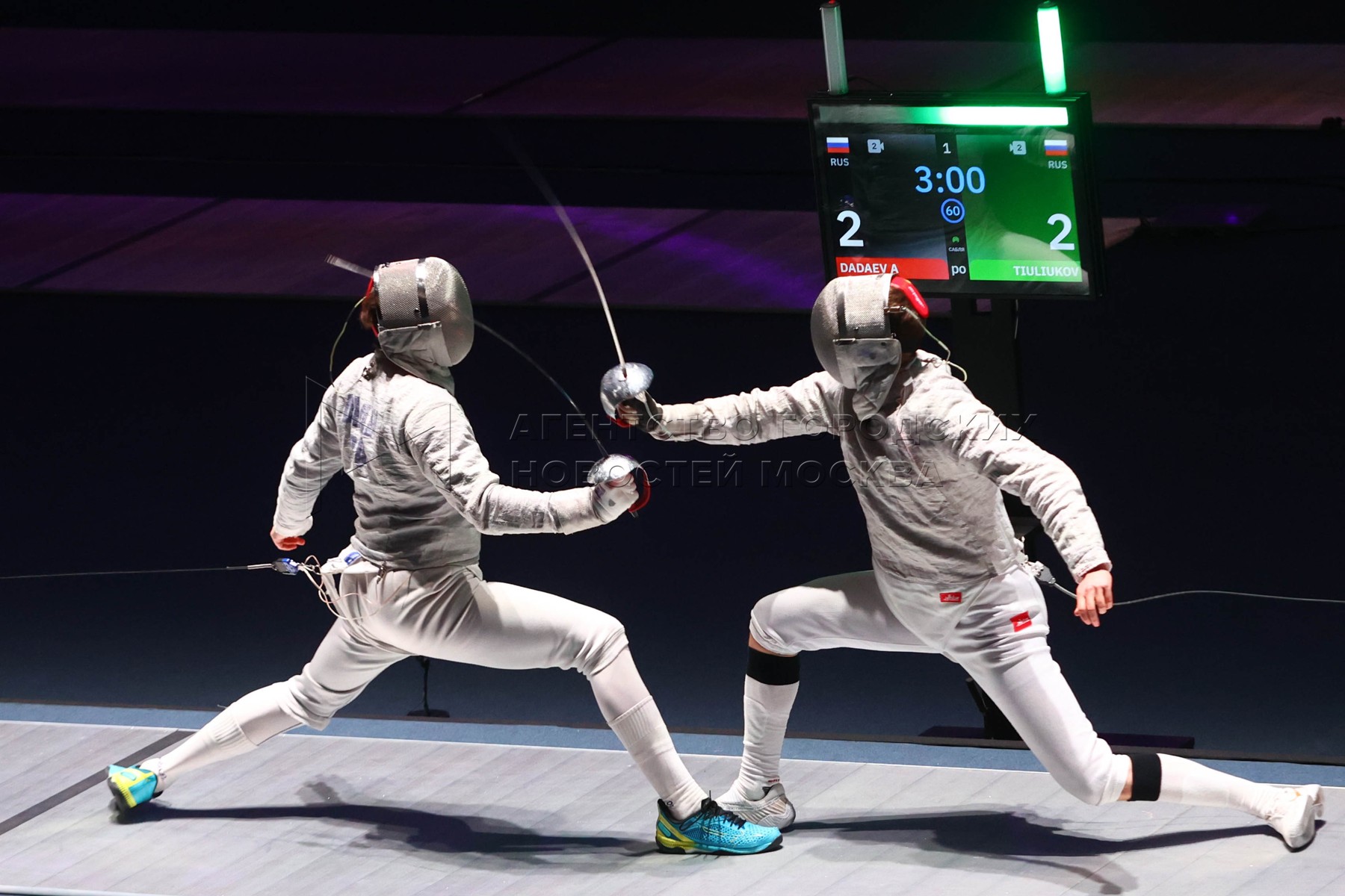 Саблисты Алексей Дадаев (слева) и Кирилл Тюлюков. Личное первенство среди мужчин ...