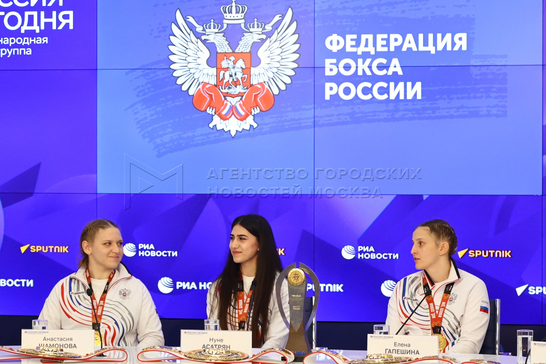 Пресс-конференция по итогам чемпионата мира по боксу среди женщин, проходившего в...