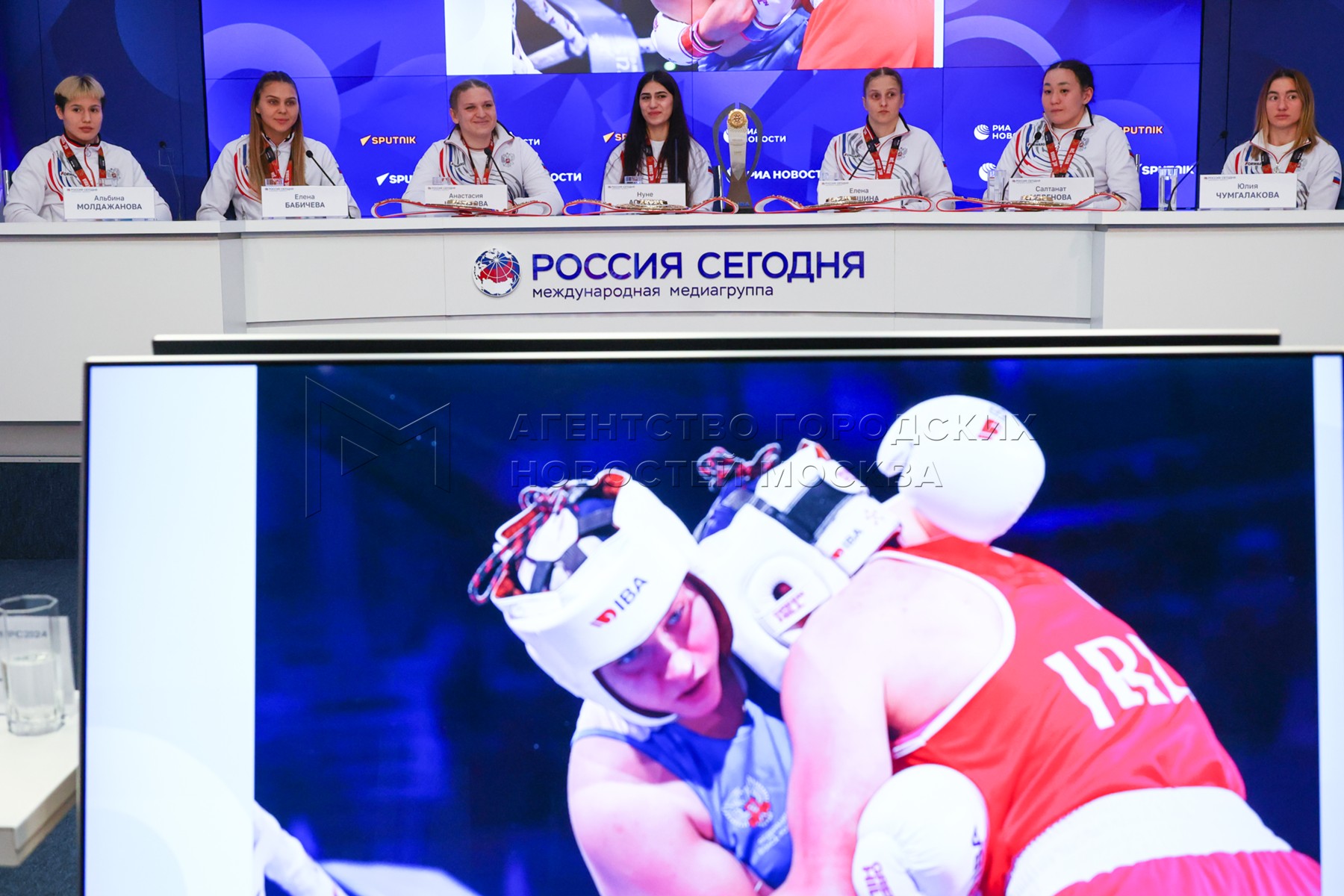 Пресс-конференция по итогам чемпионата мира по боксу среди женщин, проходившего в...