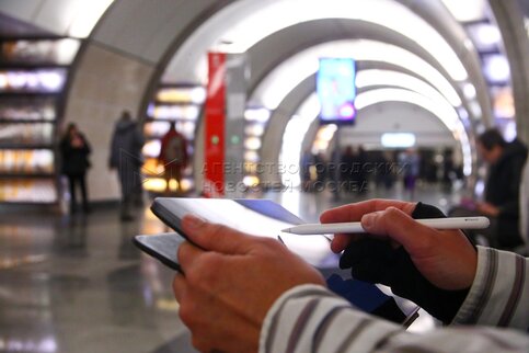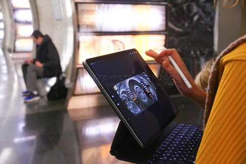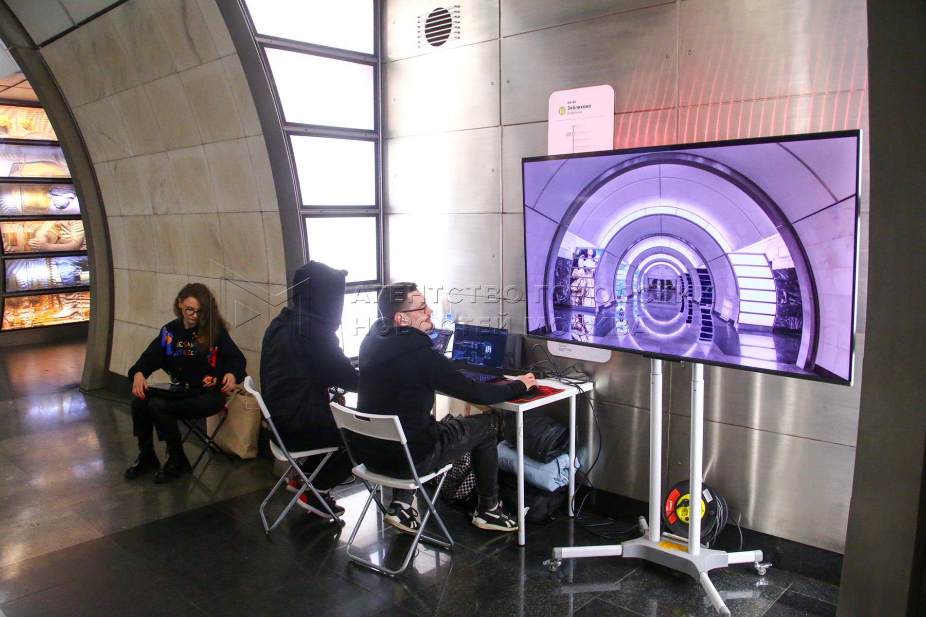 Создание цифрового рисунка участниками проекта «Искусство в метро» на станции «Фонвизинская» Люблинско-Дмитровской линии столичной подземки.