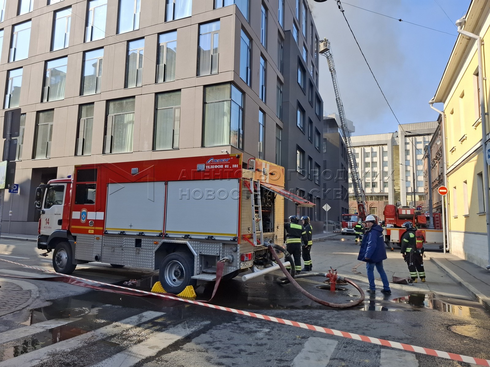 • Описание: Ликвидация пожара в д. 7 на ул. Зубовская в столичном районе Хамовники.