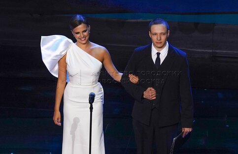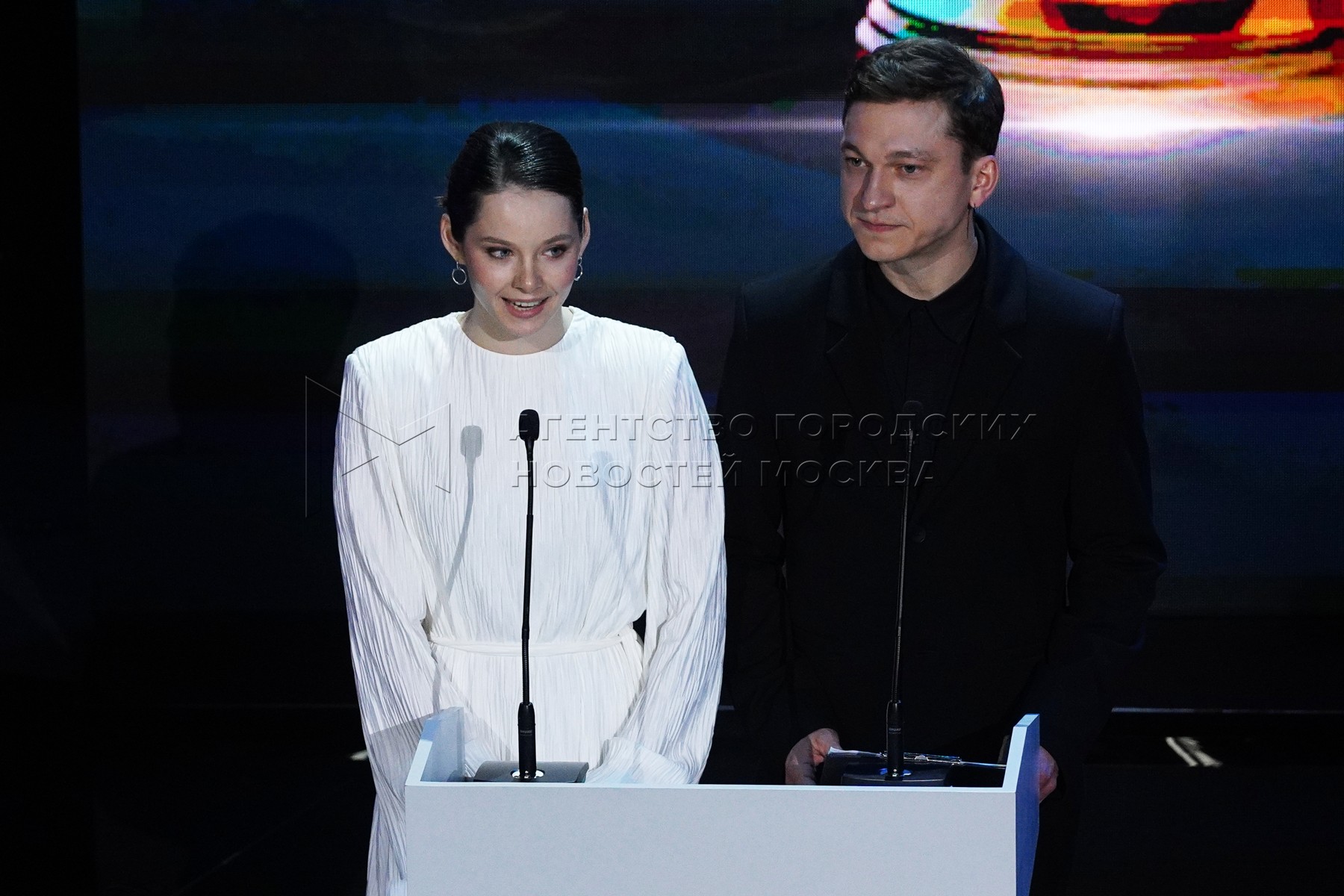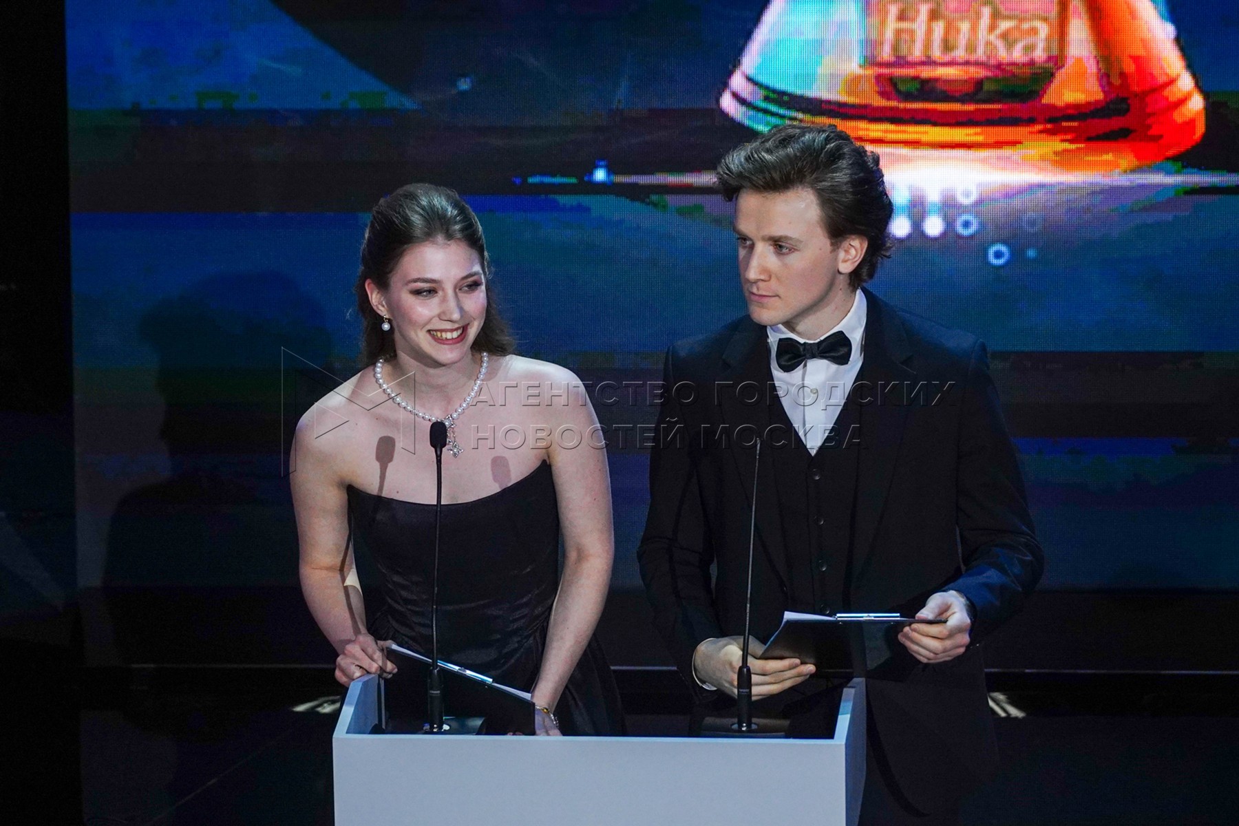 Ведущие – актеры Ника Здорик и Сергей Городничий на церемонии вручения кинематогр...