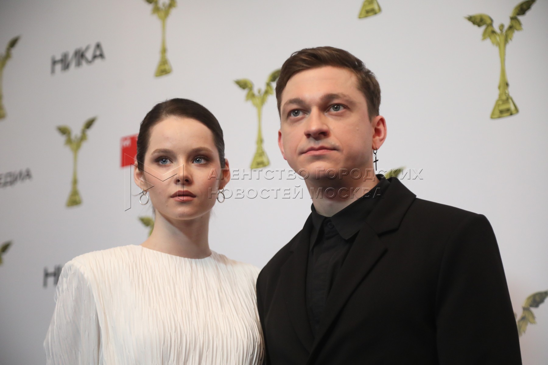 Актеры Юрий Борисов и Александра Урсуляк перед началом торжественной церемонии вр...