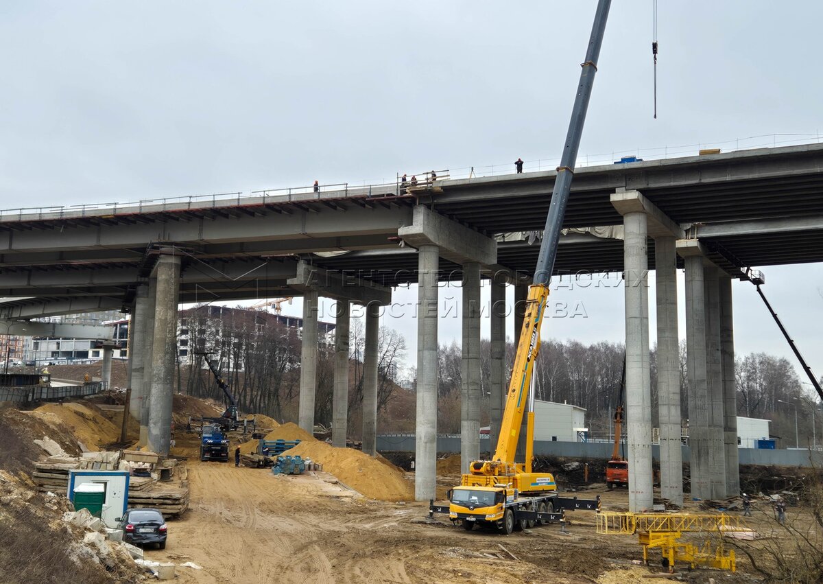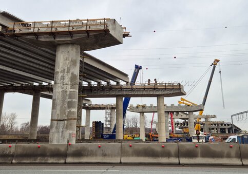 Строительство участка Южно-Лыткаринской автодороги в районе пересечения с трассой М4 «Дон» и путями Павелецкого направления Московской железной дороги в Ленинском городском округе.