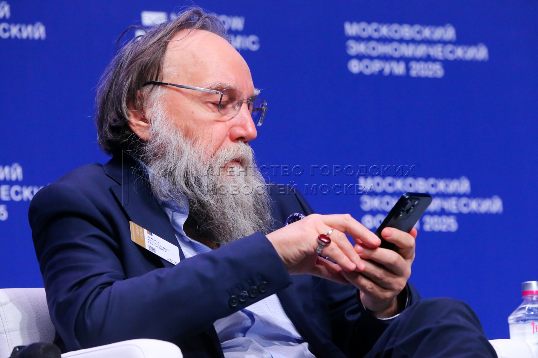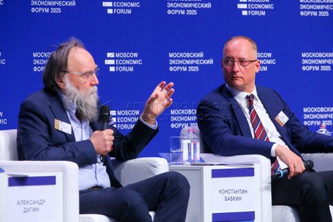 Философ, политолог и социолог Александр Дугин во время пленарной дискуссии «Новая...