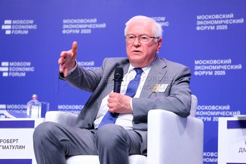 Председатель научного совета РАН Сергей Глазьев во время пленарной дискуссии «Нов...