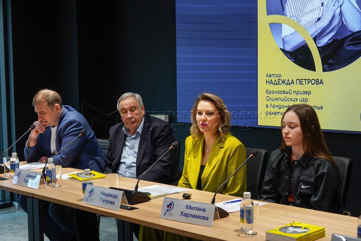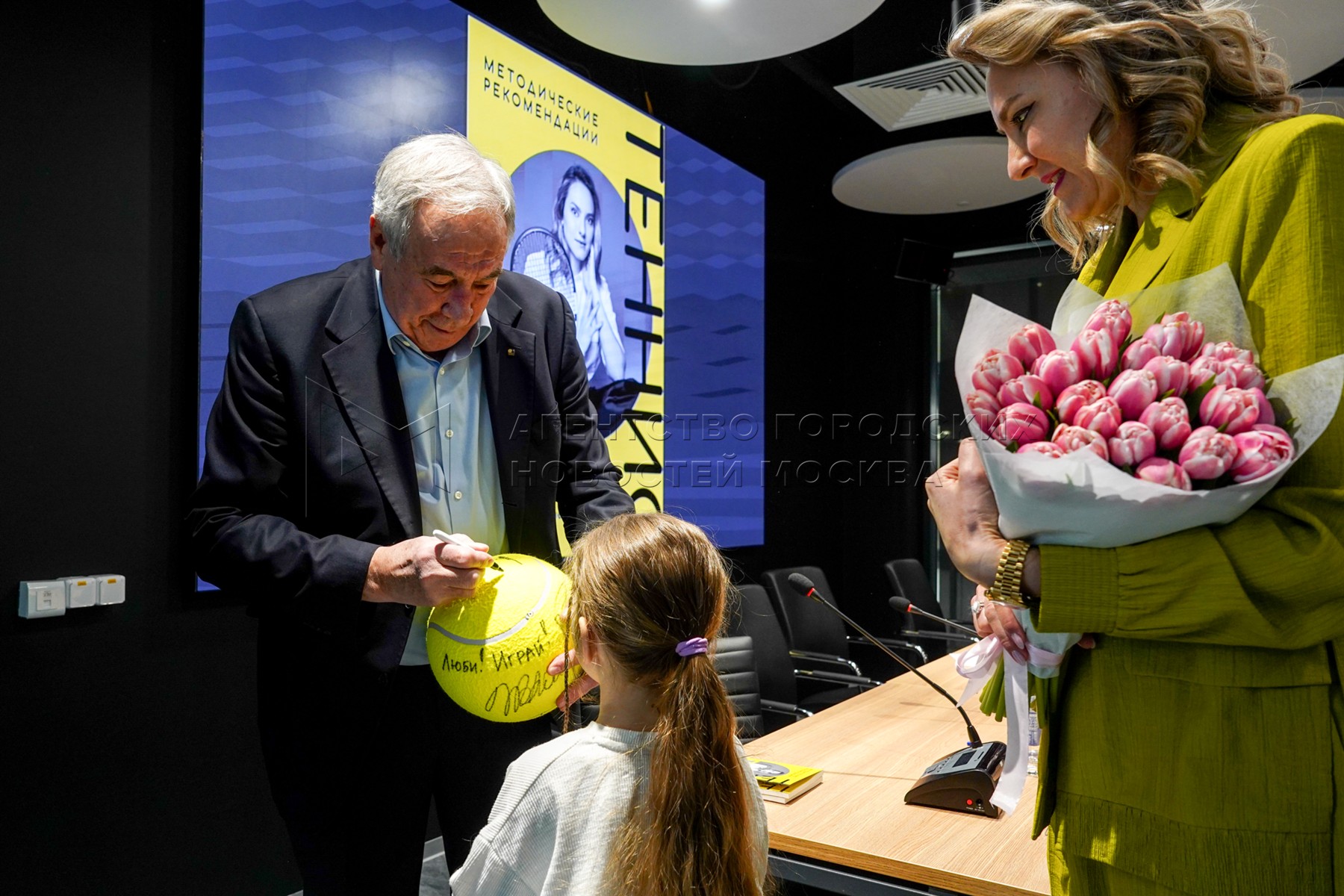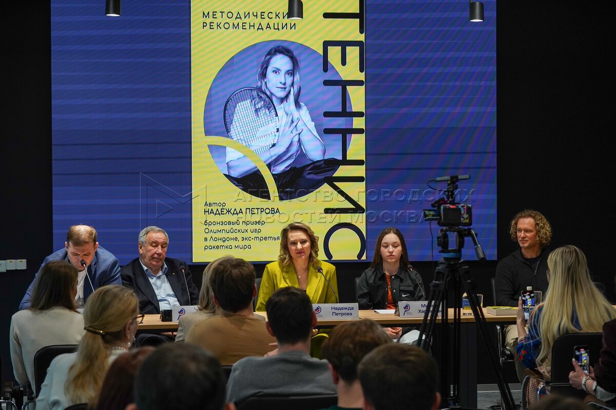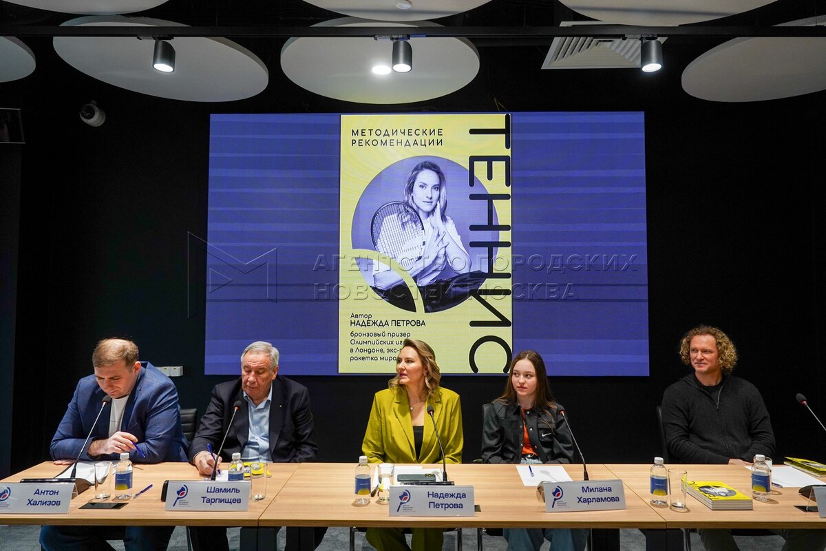- Описание: Теннисистка, бывшая третья ракетка мира, бронзовая призерка Олимпийских игр в Лондоне, основатель детской школы большого тенниса Надежда Петрова (слева) и теннисистка Милана Харламова (входит в топ-25 лучших теннисисток России в своей возрастной категории) во время пресс-конференции во дворце тенниса «Лужники».