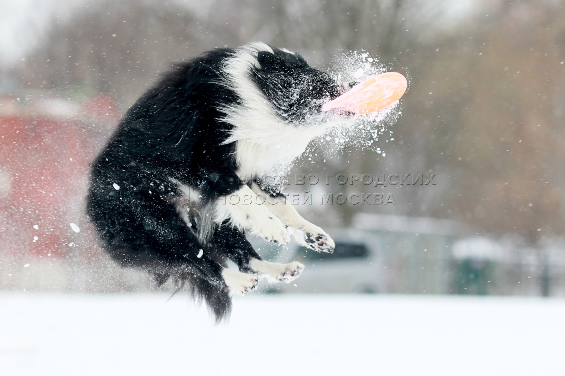 Собака радуется снегу. Снежная погода в Москве 6 апреля 2025 года.