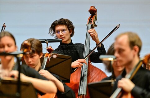Контрабасы. Оркестр «Гнесинские виртуозы» под управлением Михаила Хохлова и пиани...