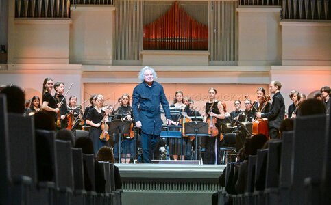 Художественный руководитель оркестра «Гнесинские виртуозы», дирижер Михаил Хохлов...