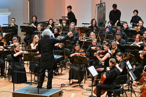Оркестр «Гнесинские виртуозы» под управлением Михаила Хохлова во время выступлени...
