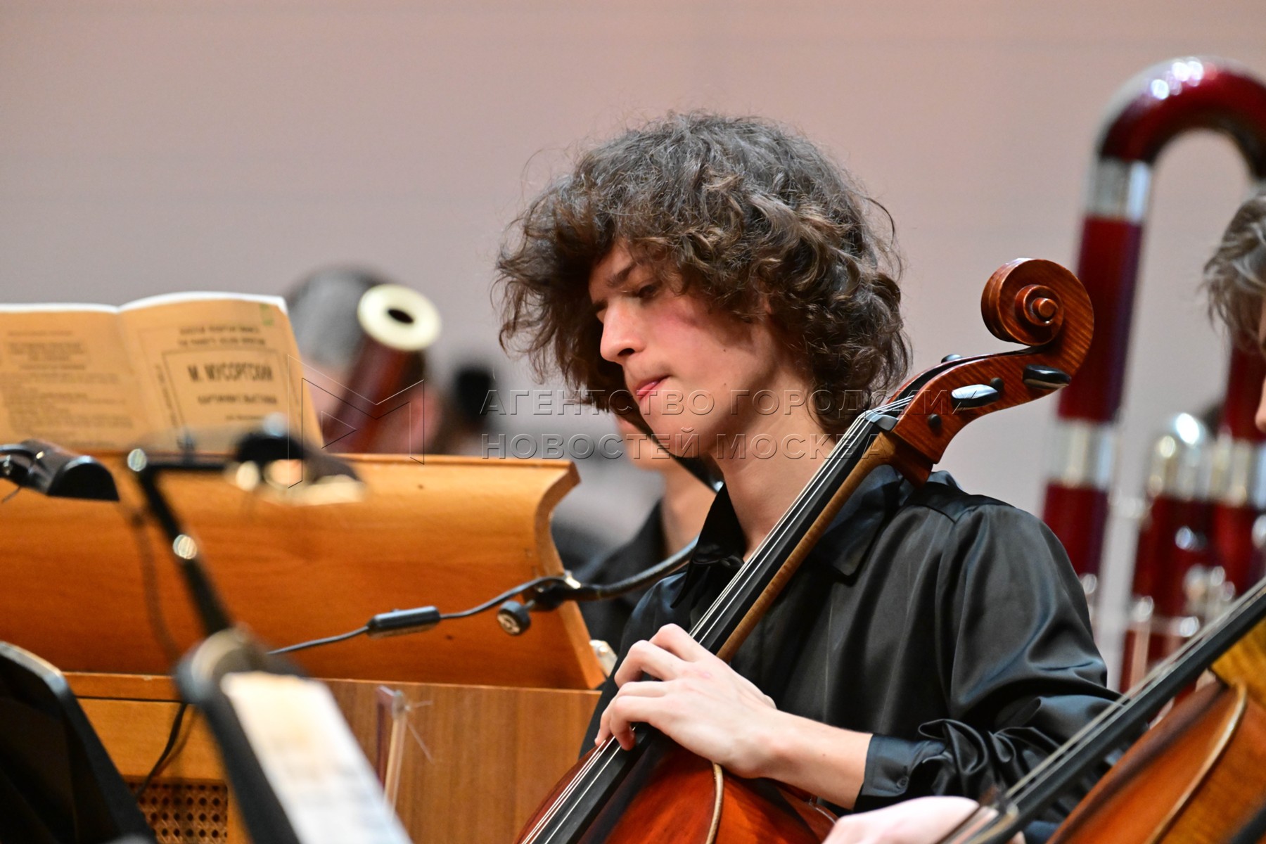 • Описание: Оркестр «Гнесинские виртуозы» под управлением Михаила Хохлова во время выступления с новой концертной программой, посвященной 80-летию Победы в Великой Отечественной войне, в концертном зале имени Чайковского.