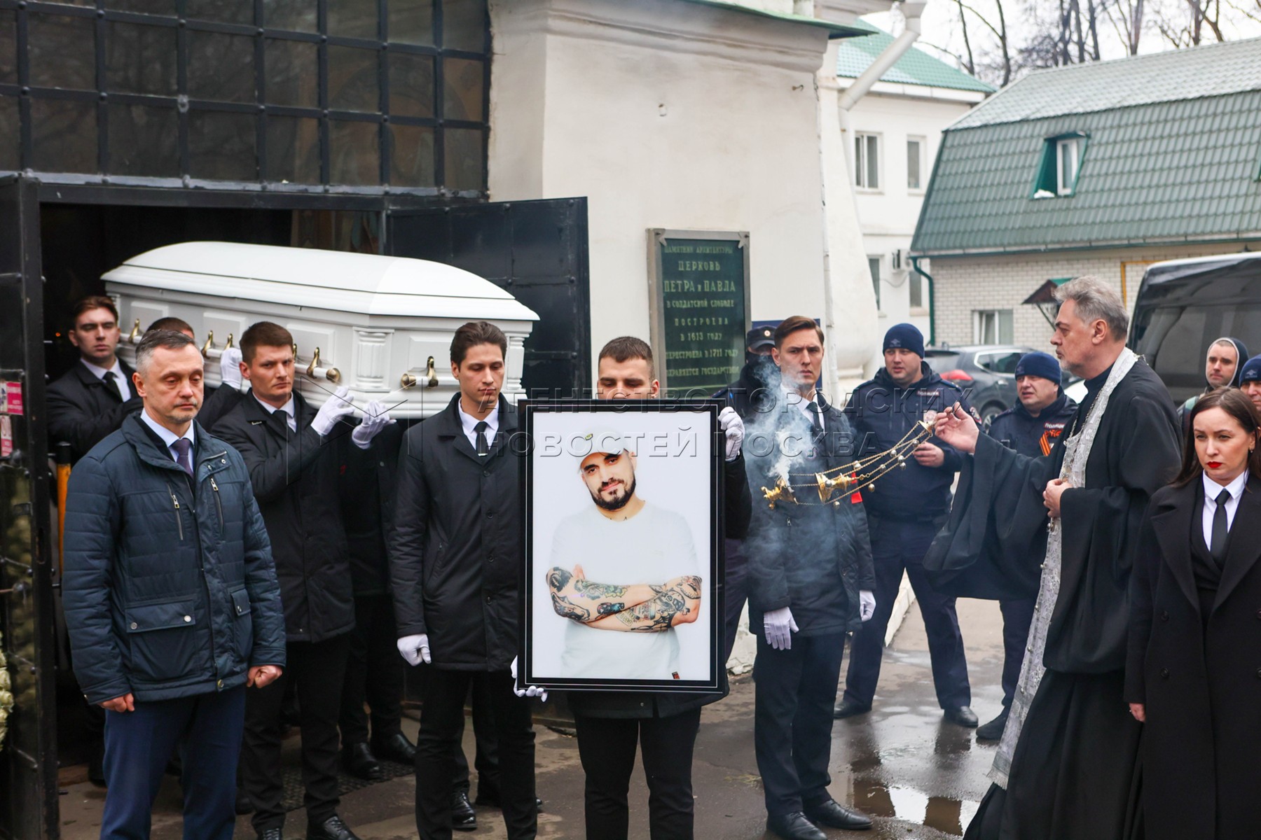 • Заголовок: Церемония прощания с рэпером Пашей Техником в храме Петра и Павла в Лефортово
