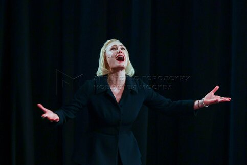 Актриса Мария Матвеева в роли Гертруды. Показ спектакля «Гамлет» режиссера Мурата...