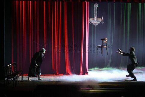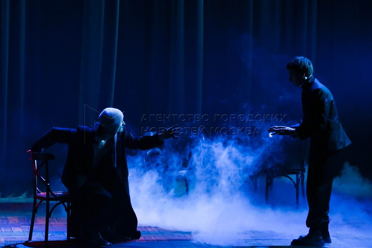 Актер Филипп Котов в роли Полония (слева). Показ спектакля «Гамлет» режиссера Мур...