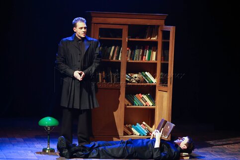 Актер Сергей Кирпиченок в роли Гамлета (справа). Показ спектакля «Гамлет» режиссе...