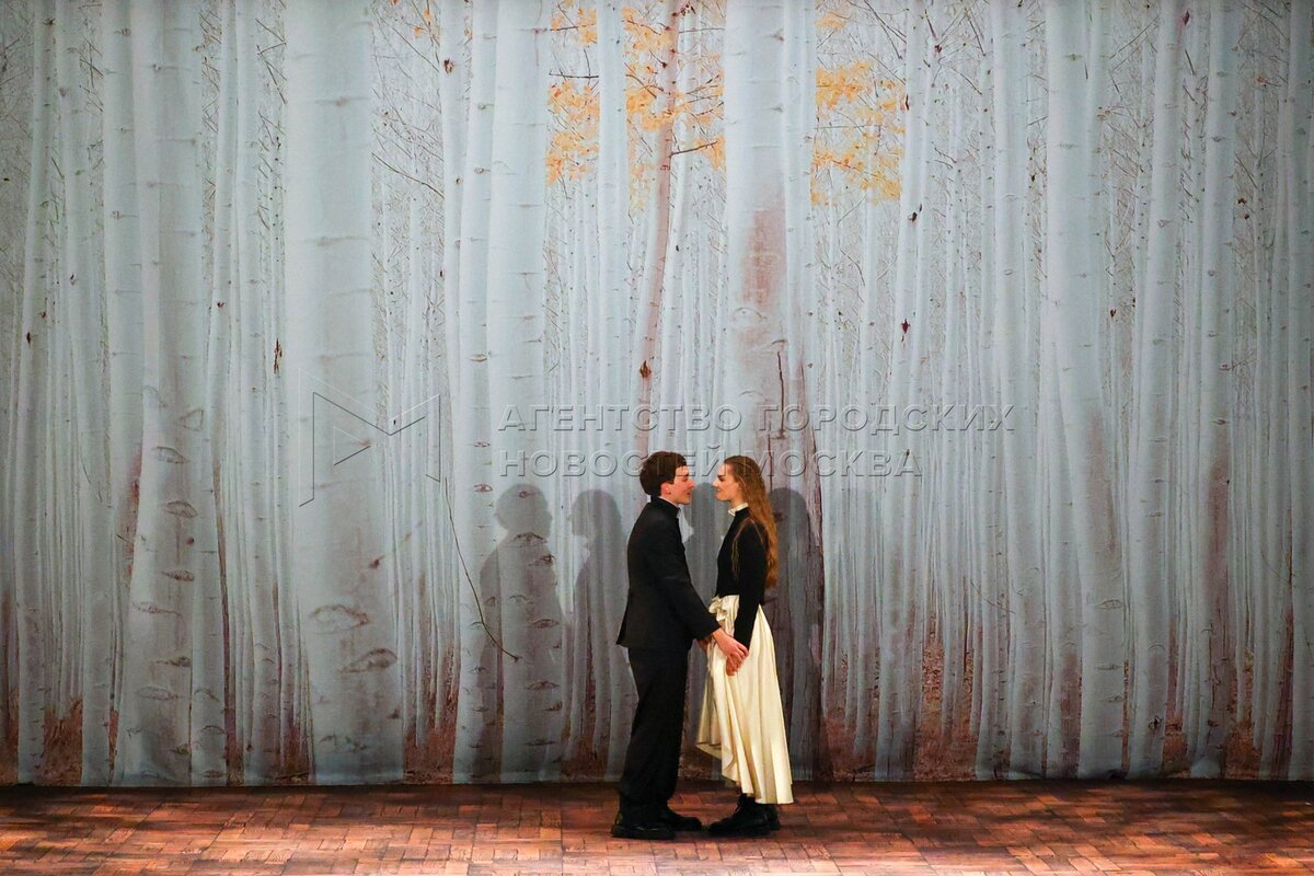 Актеры Ксения Галибина в роли Офелии и Сергей Кирпиченок в роли Гамлета. Показ сп...